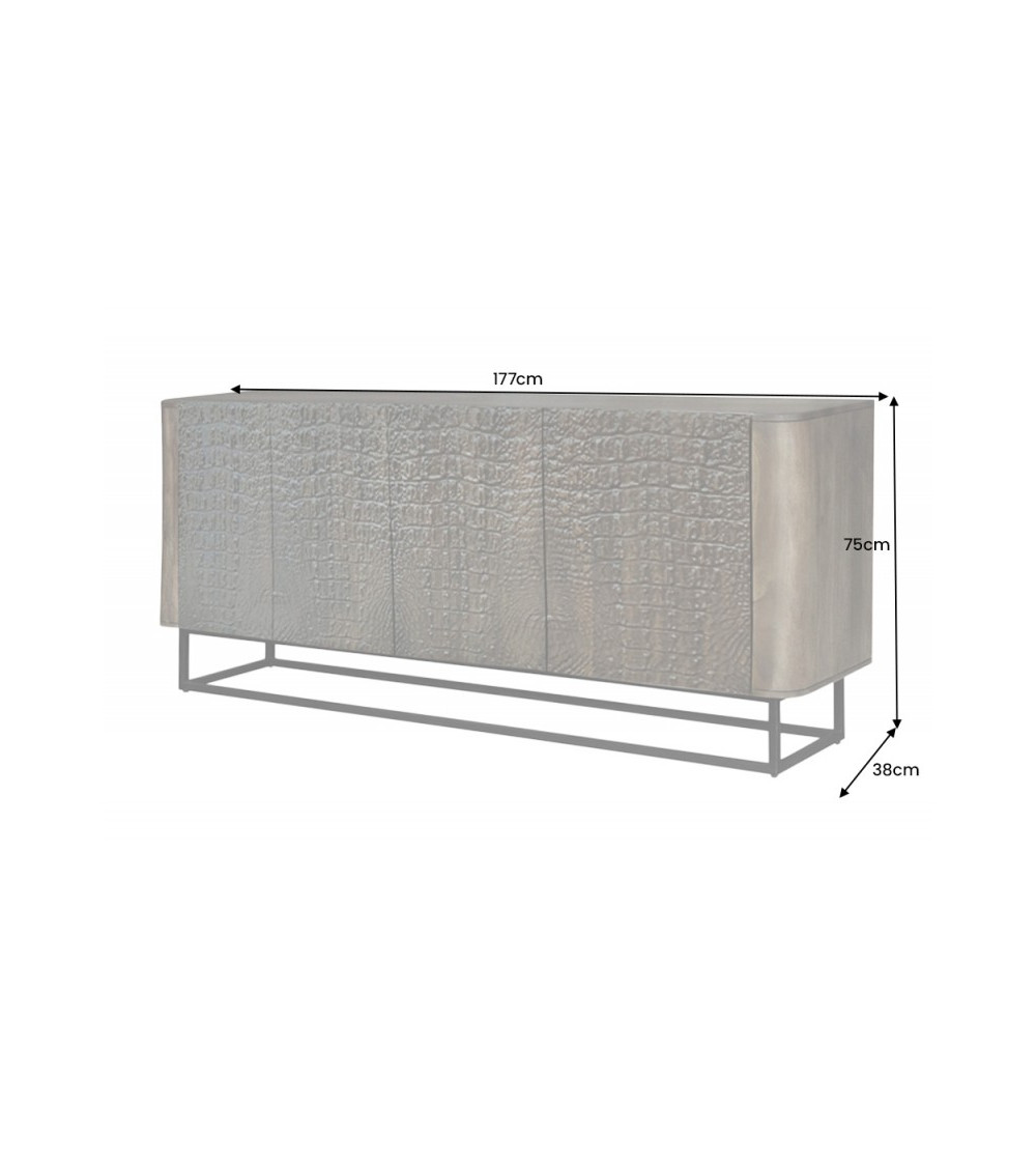 Le buffet CROCO est un chef-d'œuvre de design et d'artisanat, caractérisé par une surface en forme de crocodile soigneusement fabriquée à la main. Ce design distinctif apporte une touche d'élégance exotique à n'importe quel intérieur, transformant ce meuble en une pièce centrale dans votre décoration. Le corps du buffet est de couleur marron avec des accents noirs, tandis que le cadre est noir, ajoutant une touche moderne et industrielle.