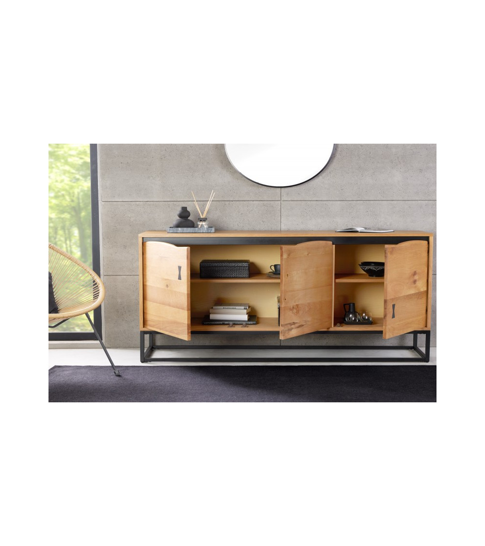 La combinaison du bois naturel et du cadre en métal noir donne au buffet un look moderne et industriel. Les étagères réglables permettent une organisation personnalisée, répondant aux besoins variés de rangement. Le buffet DREAM III est non seulement un meuble pratique mais aussi un élément décoratif raffiné, parfait pour compléter votre intérieur avec style et fonctionnalité.