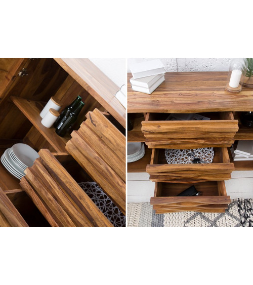 Étant donné qu'il s'agit d'un produit artisanal et naturel, chaque pièce est unique. Des écarts de couleur et de dimension ainsi que des irrégularités peuvent être présents, ajoutant au charme et à l'authenticité de chaque buffet RELIEF. Ce meuble combine esthétique et fonctionnalité, faisant de lui un ajout précieux et accrocheur à votre espace de vie.