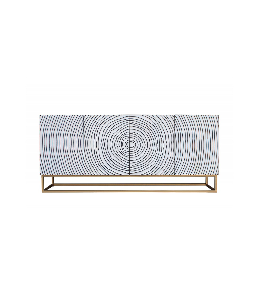 Le buffet CIRCLE présente un design saisissant avec une surface en optique 3D qui attire le regard de manière extravagante. Ses dimensions en font un meuble à la fois fonctionnel et impressionnant.