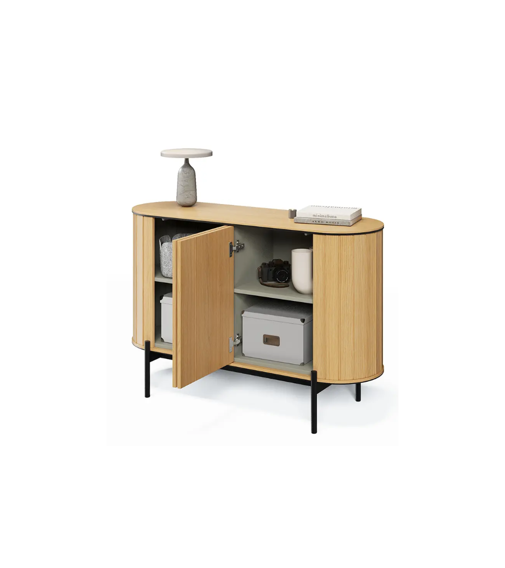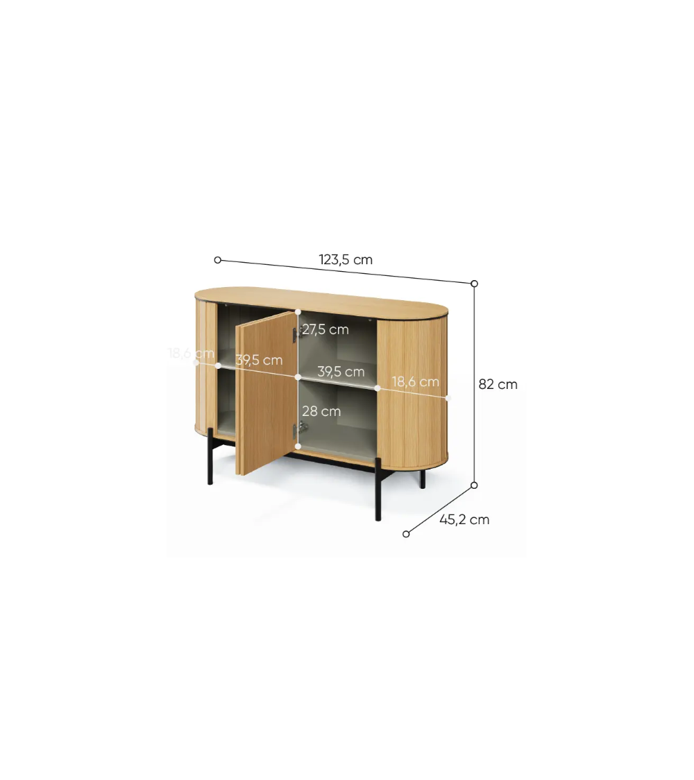 Ajoutez une touche de modernité et de praticité à votre intérieur avec la Commode Rotto - 124 cm ! Ce meuble design, parfait pour le salon, la salle à manger ou l'entrée, allie style et rangement efficace pour répondre à tous vos besoins.