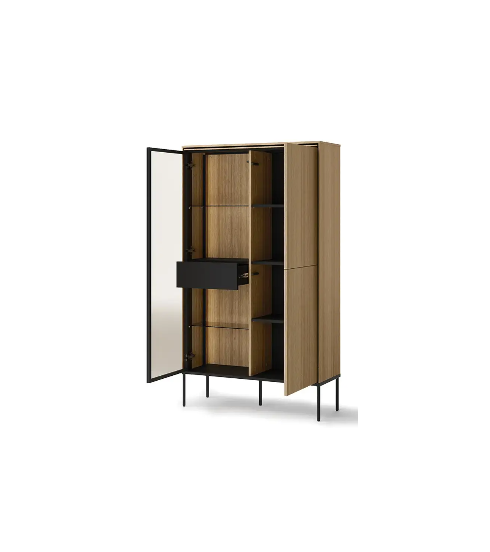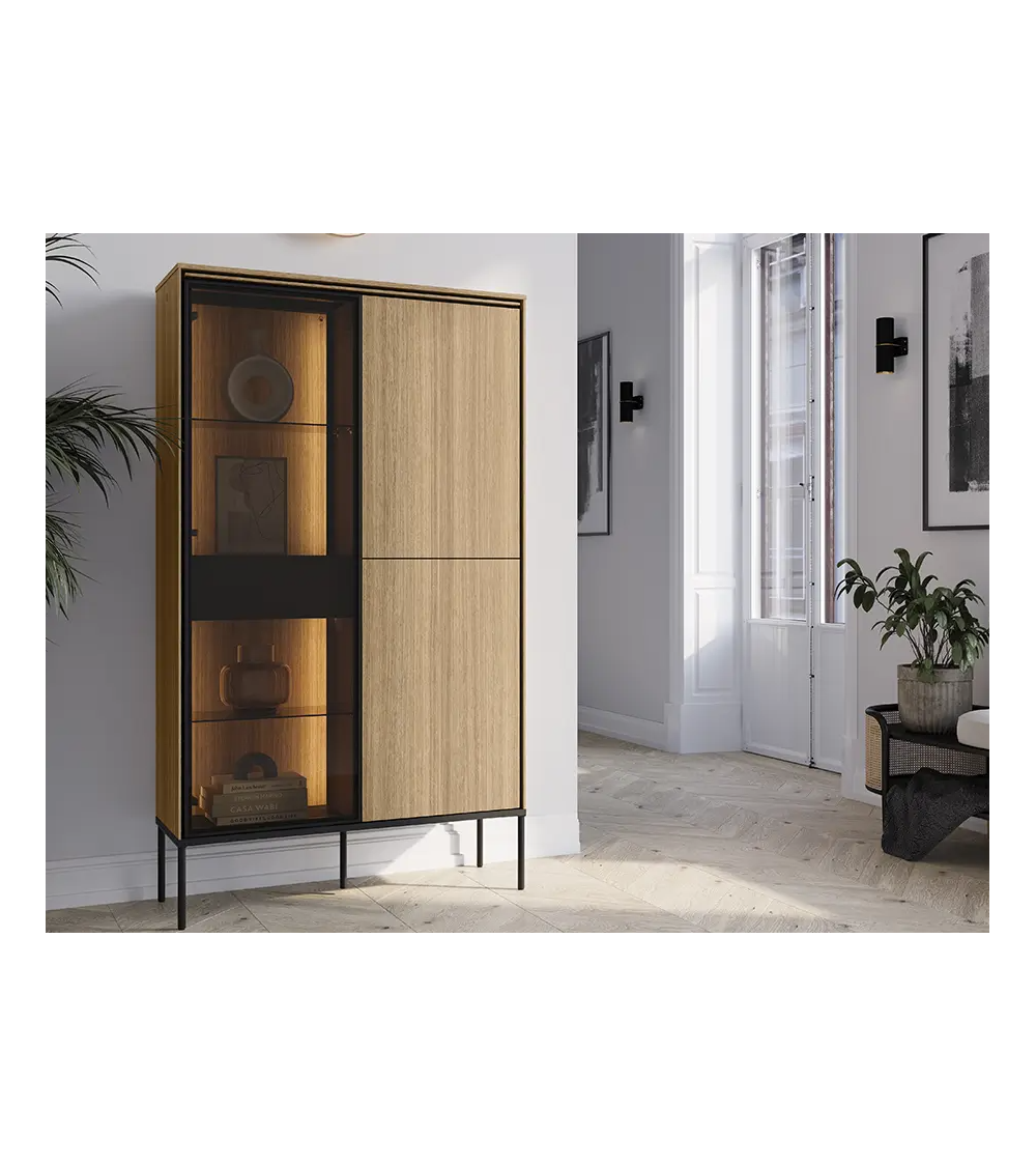 La Vitrine lumineuse Visso - 91 cm allie esthétique et praticité. Grâce à son éclairage LED intégré, vos objets prennent une nouvelle dimension, devenant le point focal de votre salon. Ce meuble est idéal pour exposer vos collections de livres, porcelaines, ou verreries tout en les protégeant avec des portes élégantes et sécurisées.