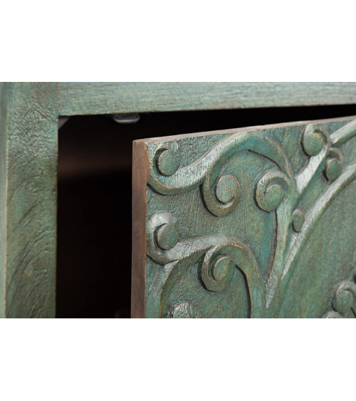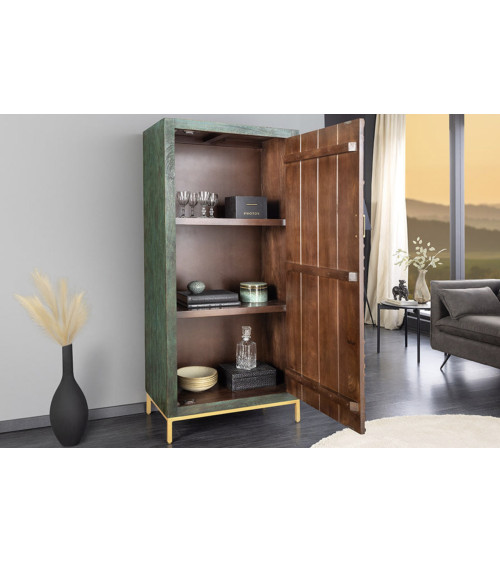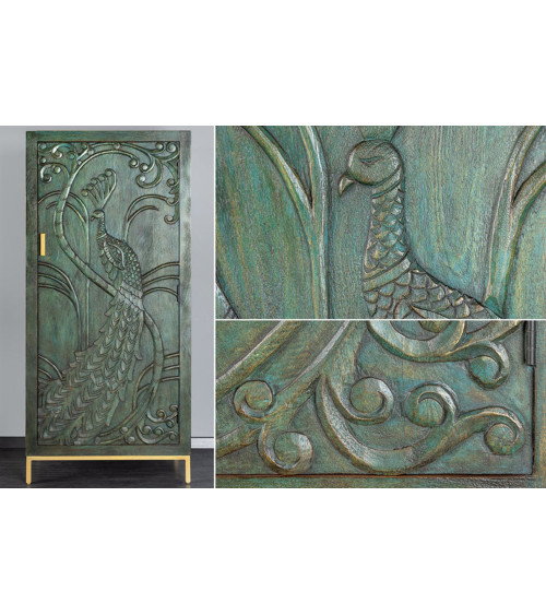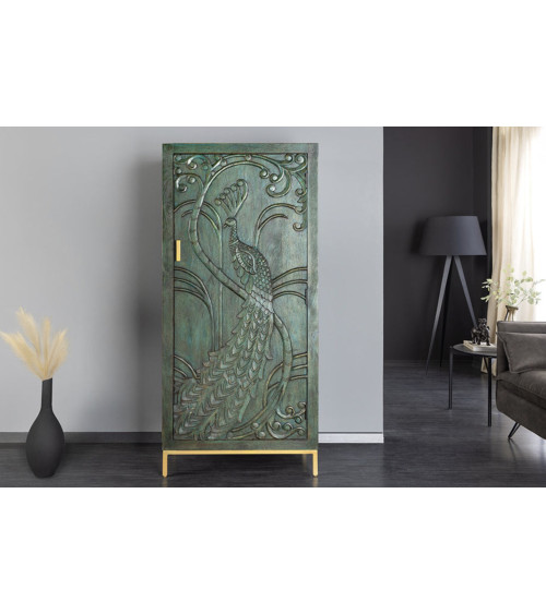 Ajoutez une touche d’élégance intemporelle à votre intérieur avec le Vaisselier PEACOCK 170cm en bois de manguier au look antique vert et or. Fabriqué à la main, il allie savoir-faire artisanal et design raffiné.