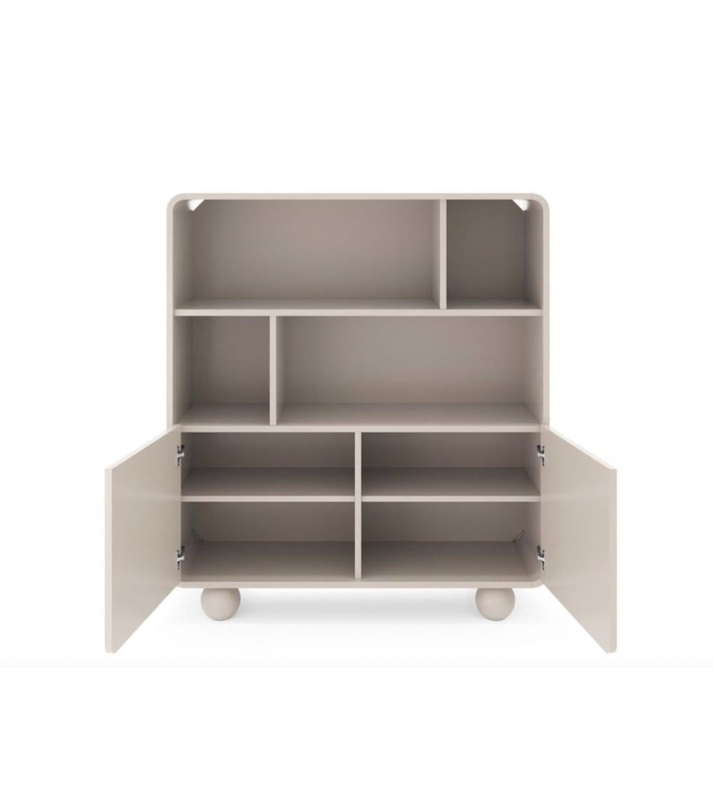 Le Rangement Albion 108 cm est pensé pour sublimer vos espaces tout en répondant à vos besoins de rangement. Ses formes adoucies et son design minimaliste créent une atmosphère chic et accueillante. Grâce à son mélange de niches ouvertes et de compartiments fermés, vous pourrez exposer vos objets déco préférés tout en rangeant discrètement vos affaires.