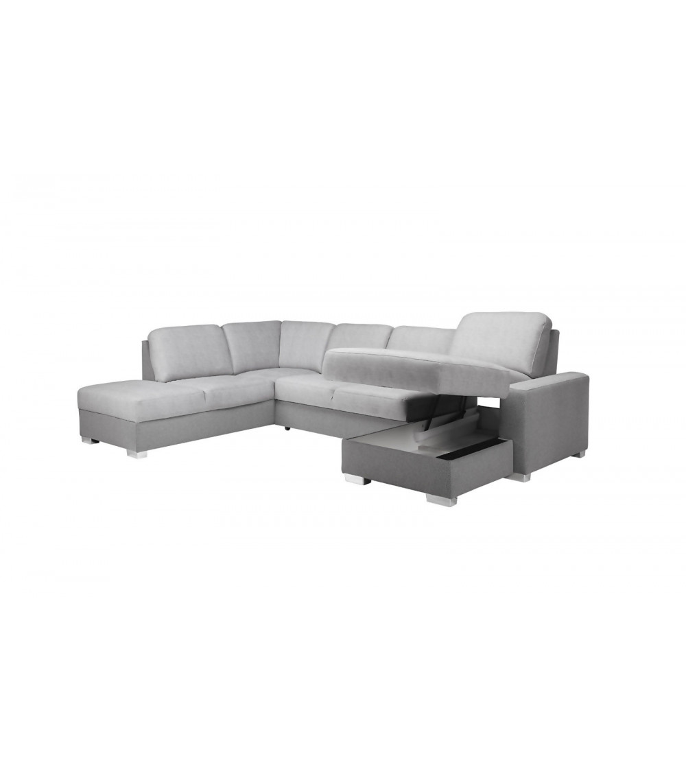 Un conteneur situé sous le siège d'un canapé d'angle ou d'un canapé-lit, destiné à stocker, par exemple, du linge de lit.