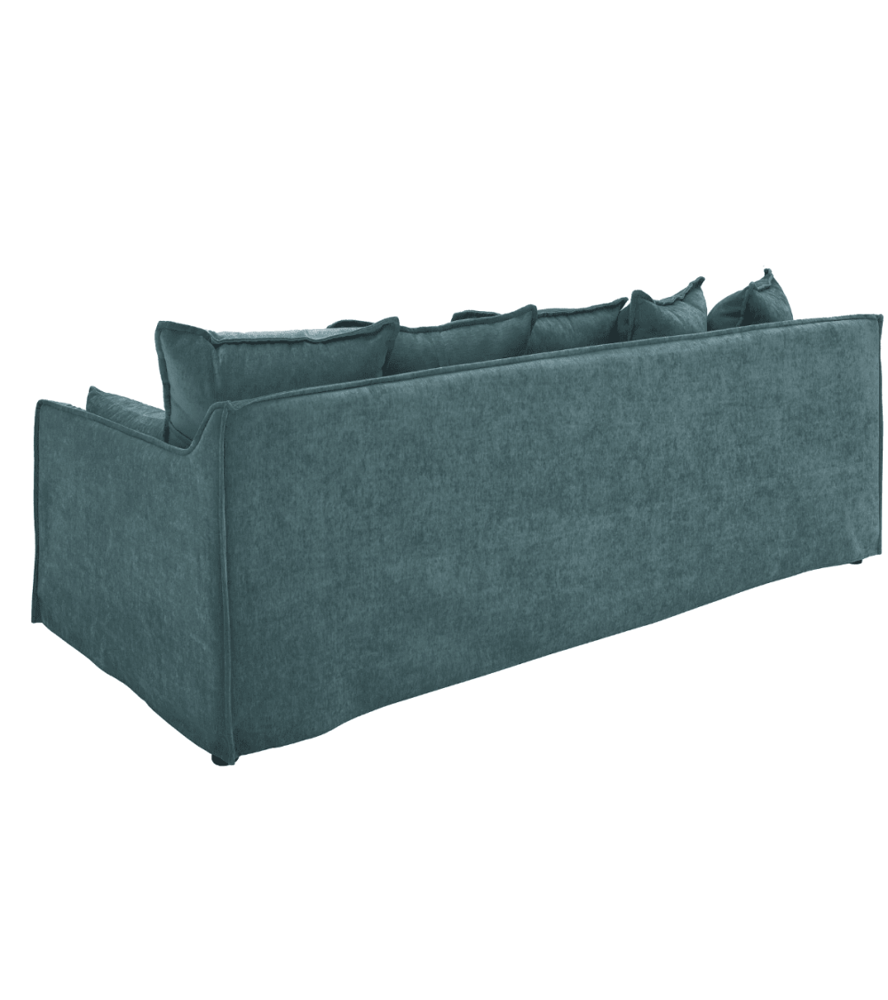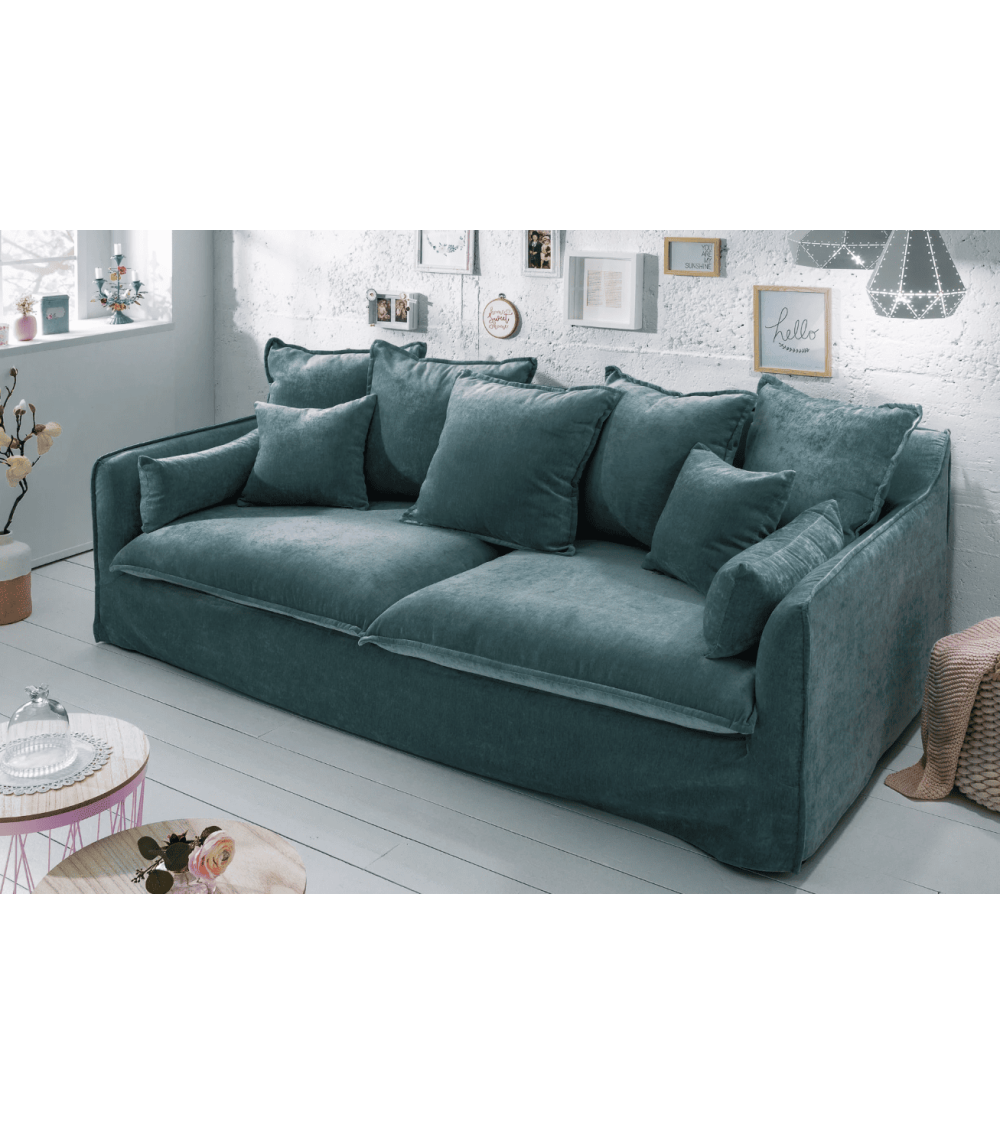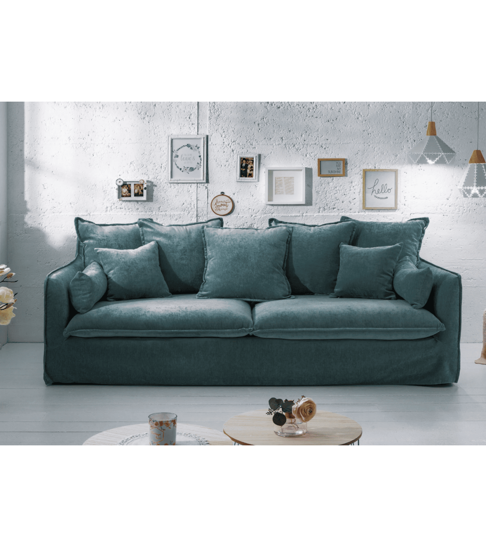 Le canapé HEAVEN 200 cm se distingue par son allure raffinée et son confort exceptionnel. Recouvert d'un velours bleu canard, il apporte une atmosphère apaisante et sophistiquée à votre salon.