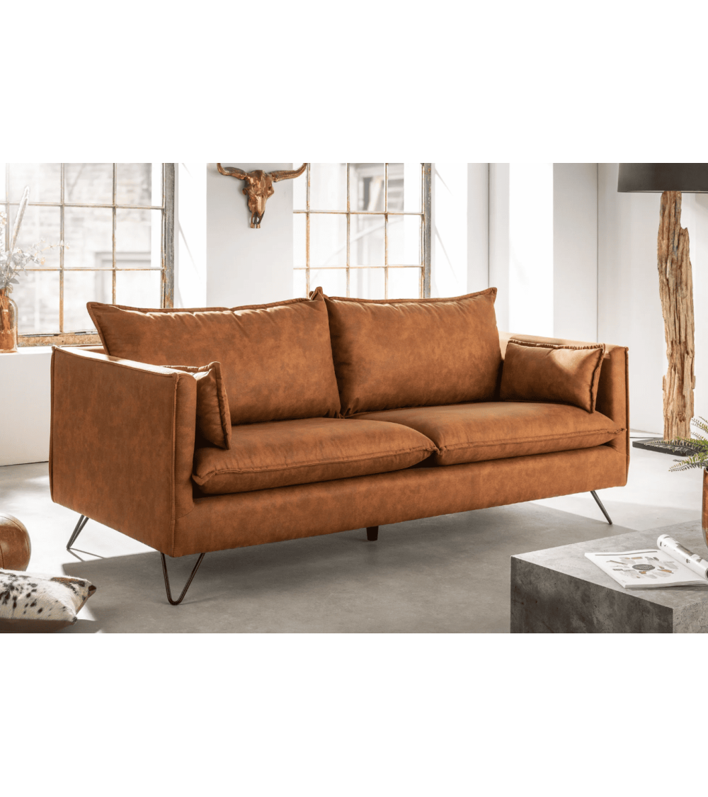 Le canapé ROCCO 194 cm allie style intemporel et fonctionnalité. Son revêtement en microfibre marron antique offre un toucher doux et une esthétique vintage irrésistible. Les pieds en épingle noirs apportent une touche d’élégance rétro, idéale pour les amateurs de design.