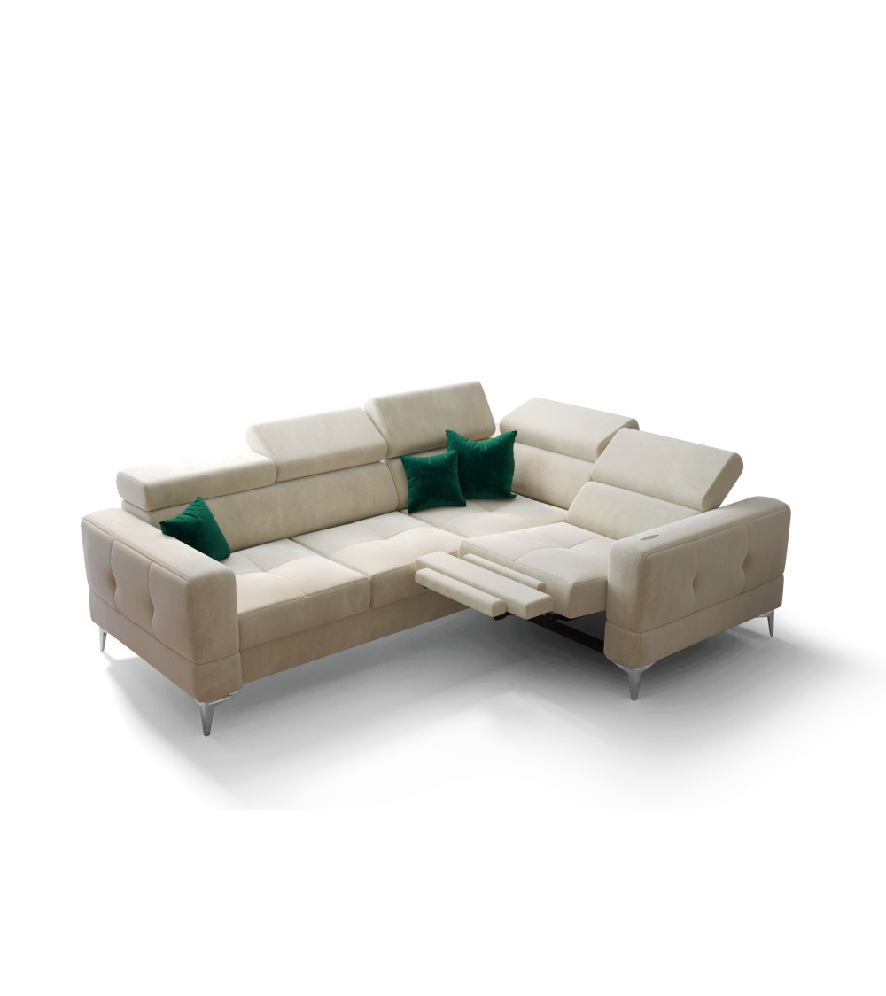 Le canapé d'angle rembourré TOSCANIA est équipé de la fonction RELAX, qui est extrêmement confortable et fonctionnelle. Grâce aux réglages en plusieurs étapes, vous pouvez l'ajuster à votre position corporelle préférée. L'ensemble donne au meuble un aspect extrêmement luxueux et répond aux exigences des clients les plus pointilleux.
