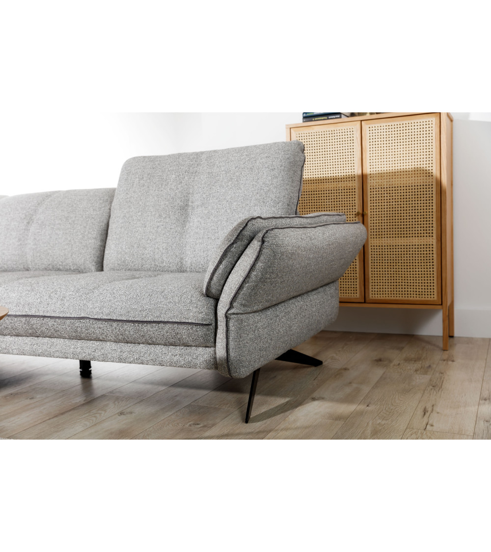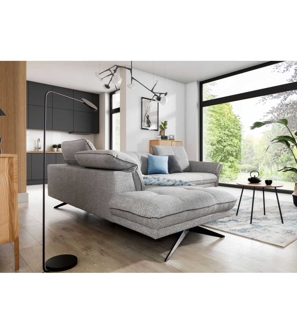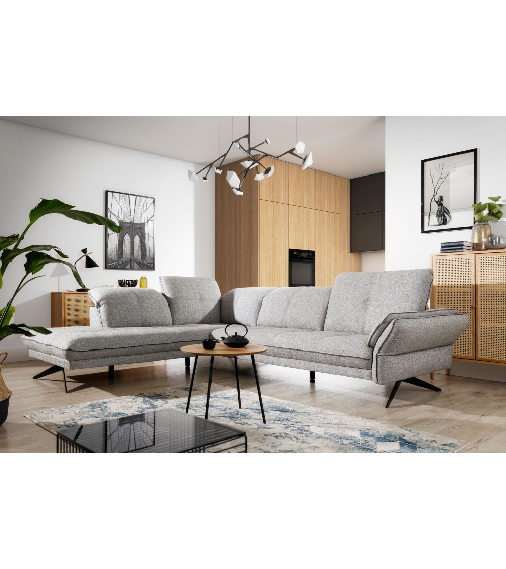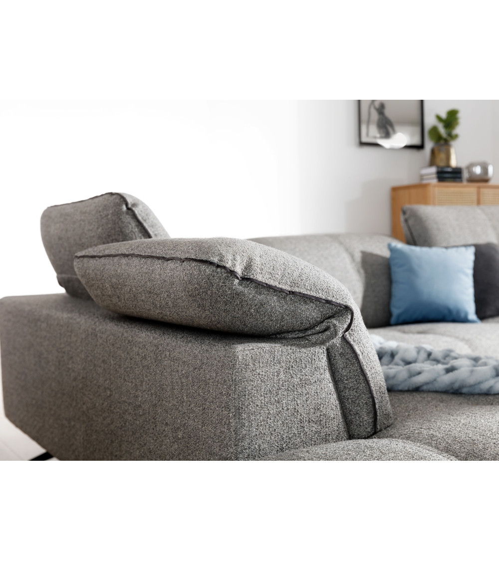 Imposant canapé d'angle de grandes dimensions. Grâce à ses dimensions généreuses, il accueillera facilement famille et amis dans le plus grand confort.