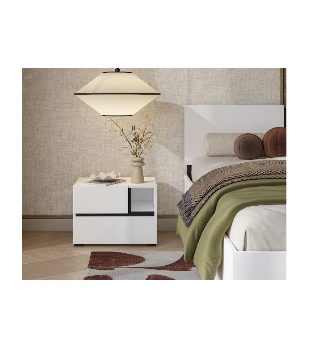 La chambre CROSS se distingue par son style moderne aux lignes sobres et équilibrées. Conçue pour s'intégrer parfaitement dans un intérieur actuel, elle offre un espace nuit à la fois esthétique, fonctionnel et confortable.