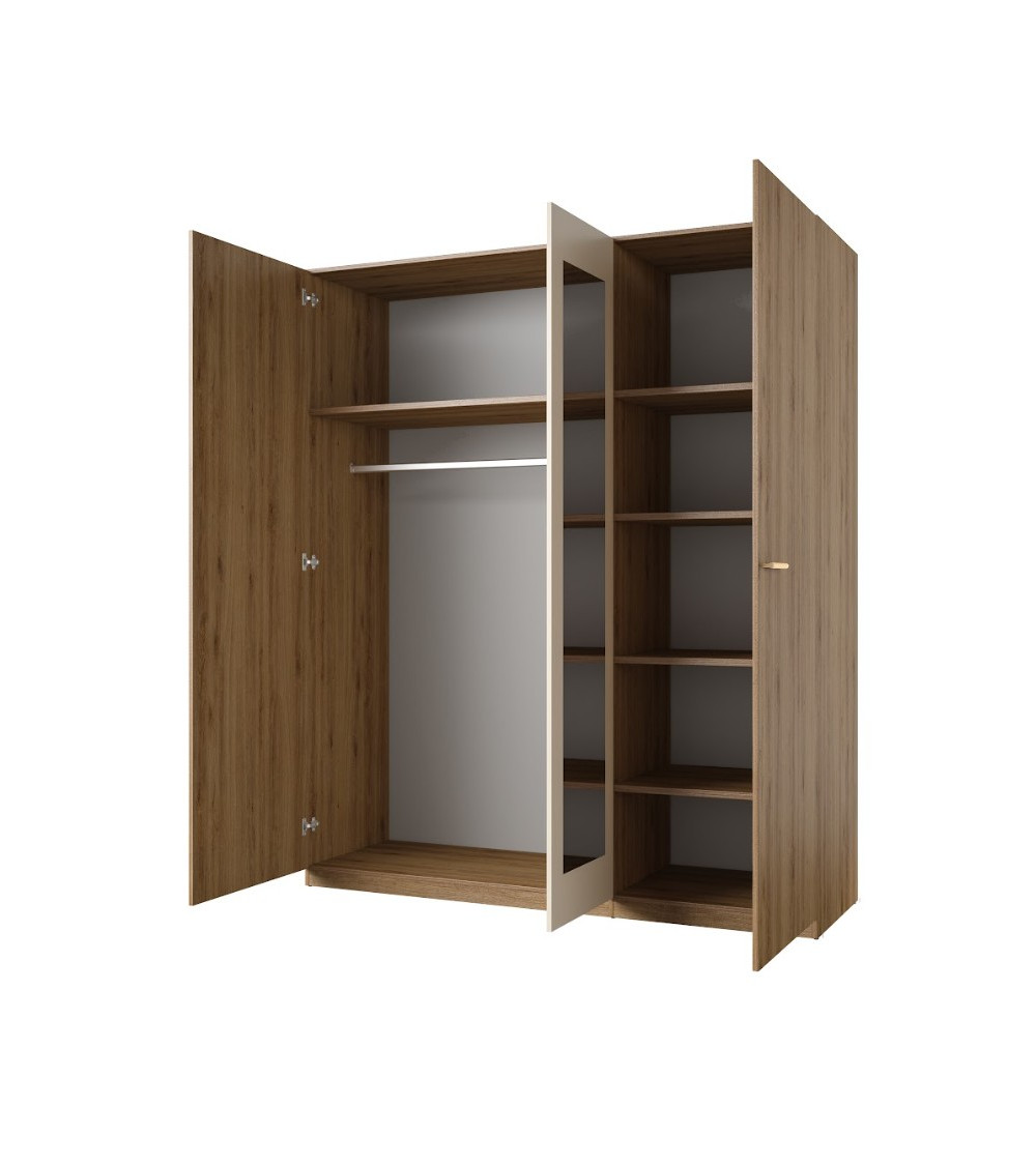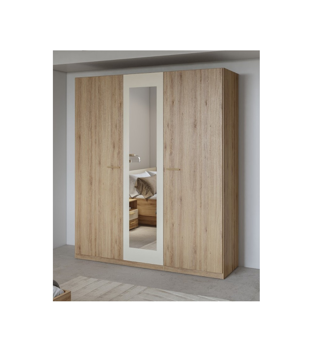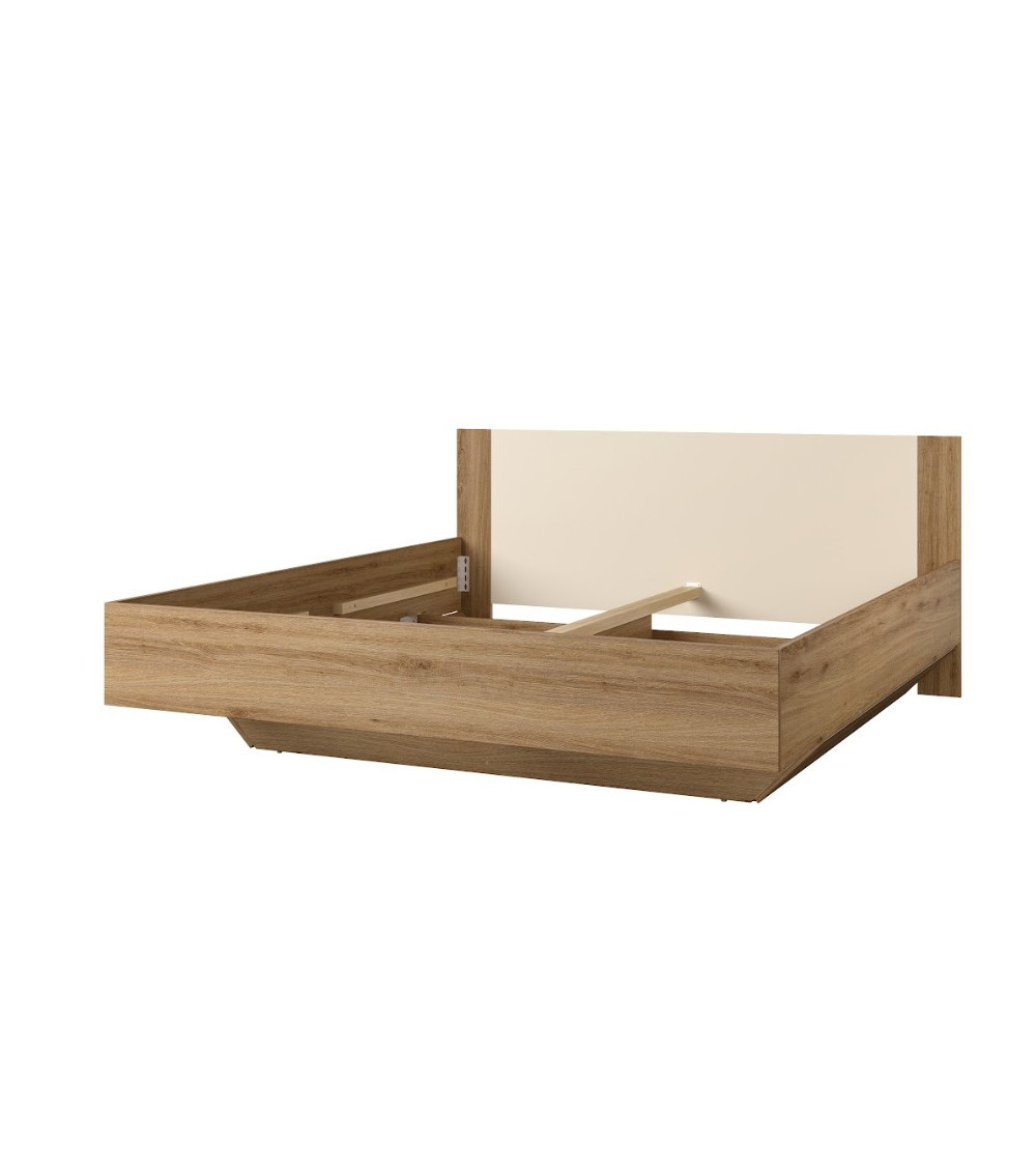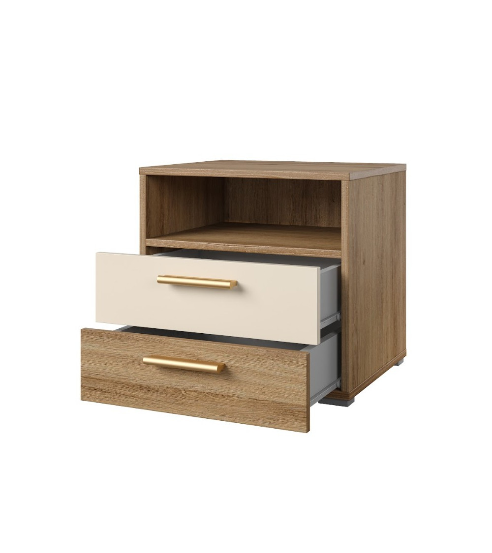 Un design chaleureux et moderne aux finitions chêne naturel et beige brillant.