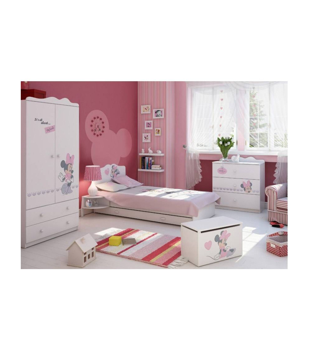 A n'en pas douter, la chambre Minnie marquera un nouveau chapitre de la vie de votre fille !!! Sa chambre Minnie sera l'endroit idéal pour jouer et apprendre !!! Dans cet univers Disney et cette décoration craquante, les filles adorent jouer avec leurs poupées, elles y feront aussi leus premières peintures inoubliables, y cacheront leurs trésors dans des boîtes et tiroirs. Ce sera le royaume de votre petite princesse.