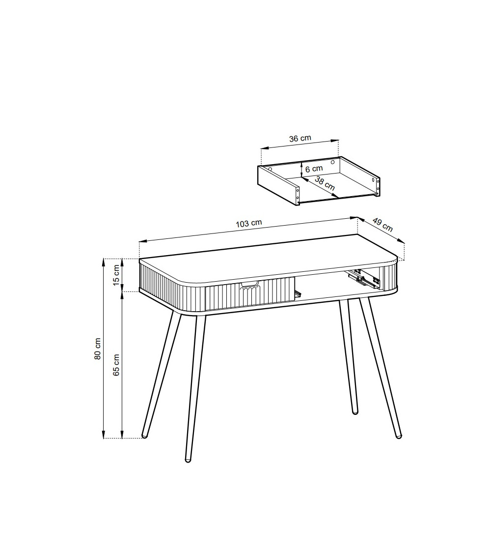 CORPS : panneau de particules stratifié 16 mm ; chant ABS 0,5 mm sur la paroi centrale et les étagères ; chant ABS 1 mm sur le dessus et le dessous ; MDF 18 mm
