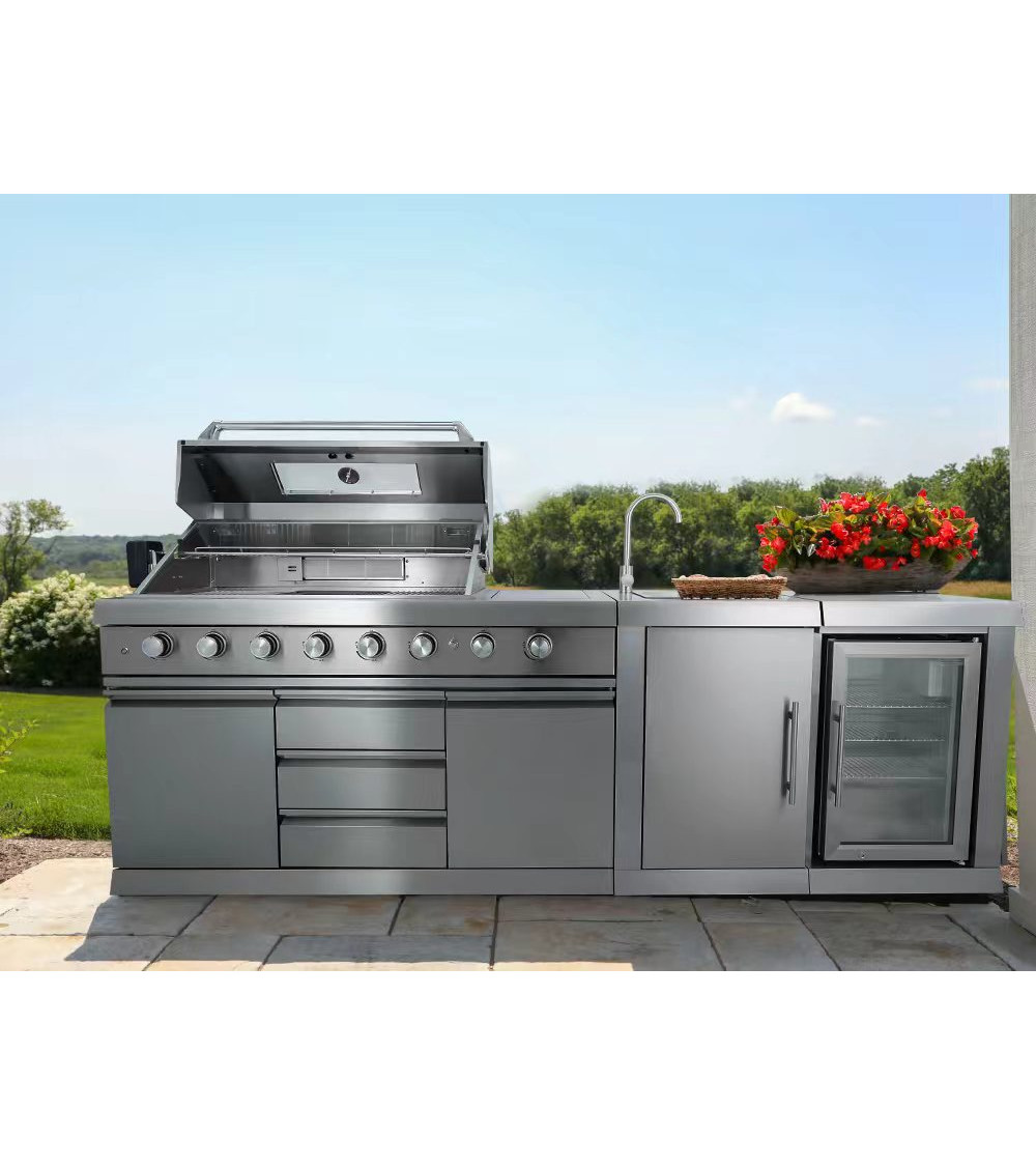 Apportez le confort d’une cuisine complète à votre terrasse avec la cuisine extérieure 4 pièces Hyxion. Fabriquée en acier inoxydable 304/430, elle combine durabilité, design moderne et performance professionnelle.