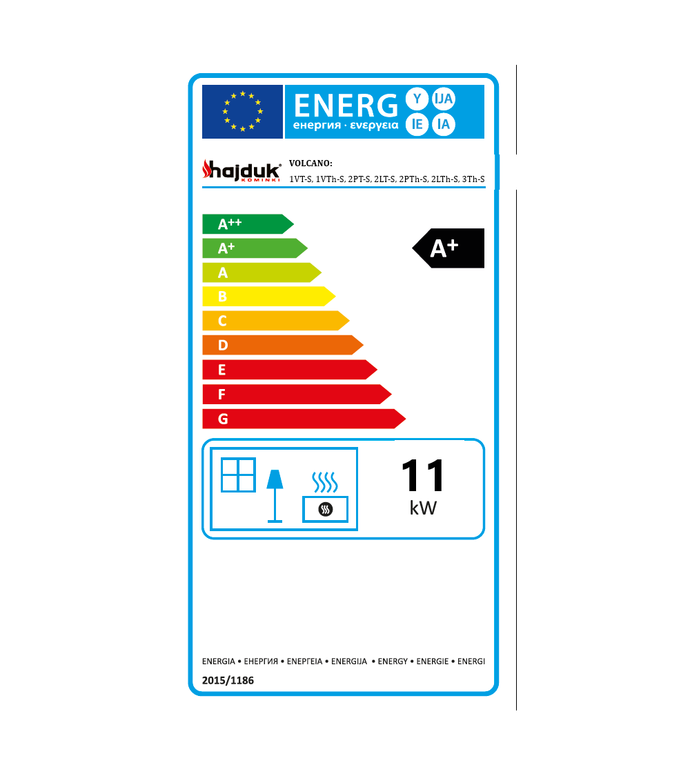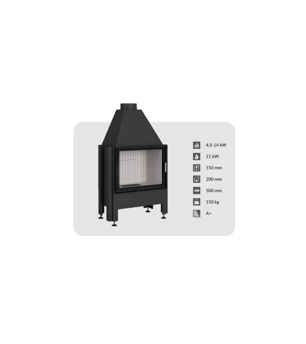 Voici le Volcano 1VT-S, l'insert qui ne fait pas dans la demi-mesure ! Avec une puissance nominale de 11 kW, il est prêt à transformer votre salon en volcan domestique. Sa plage de fonctionnement entre 4,5 et 14 kW vous assure de la chaleur à la demande, sans jamais perdre en efficacité. D’ailleurs, avec une efficacité énergétique classée A+ et un rendement moyen de 83%, il allie performance et économie.
