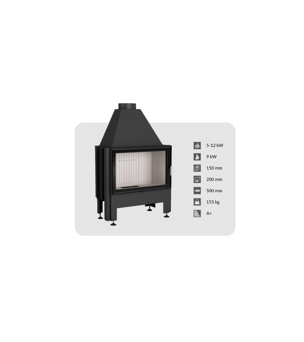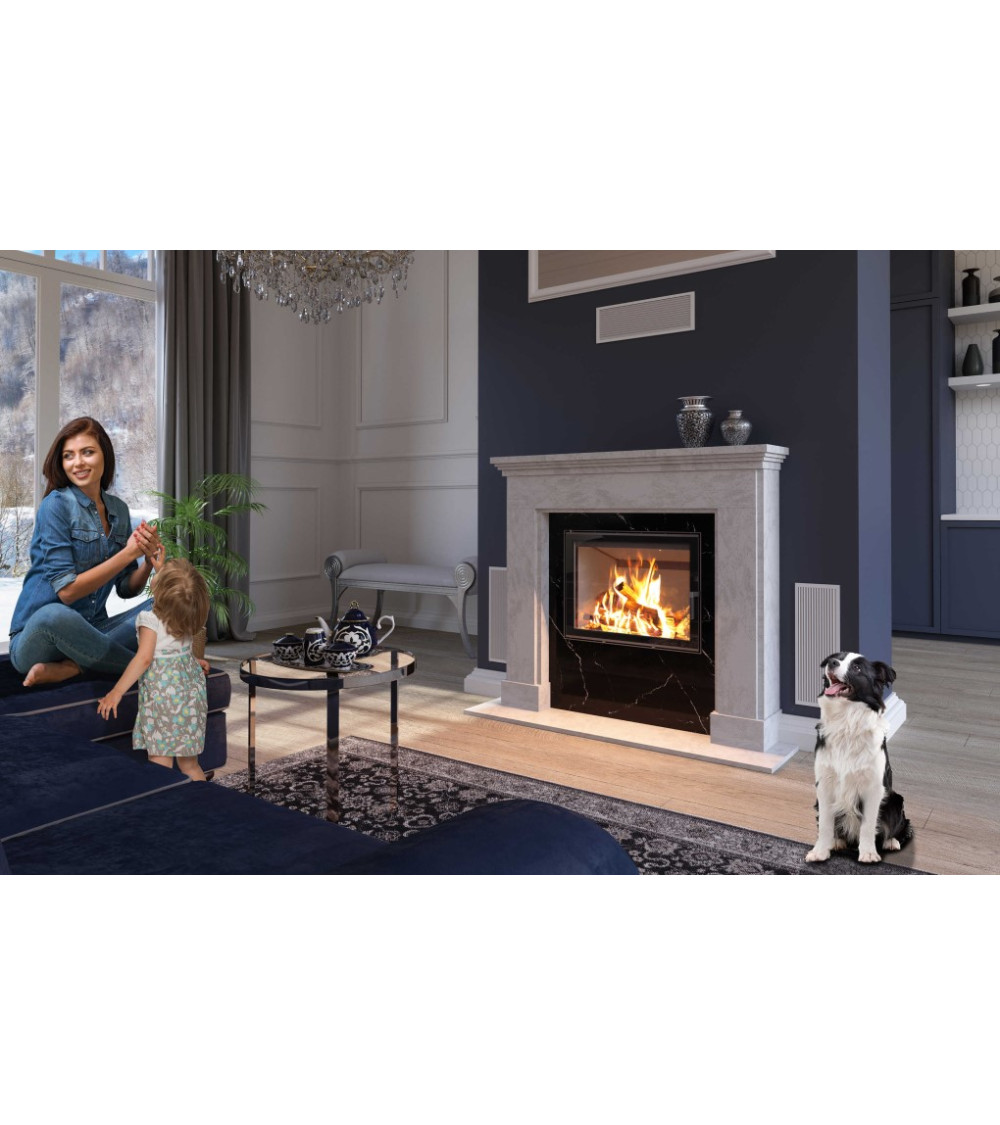 Ce monstre de chaleur accueille des bûches de 50 cm, histoire de tenir la distance dans vos soirées d’hiver. Son double coque en acier et chamotte garantit une robustesse à toute épreuve, tandis que son verre céramique supporte sans broncher des températures jusqu'à 800 °C. Vous pouvez y aller, cet insert est fait pour les flammes intenses !