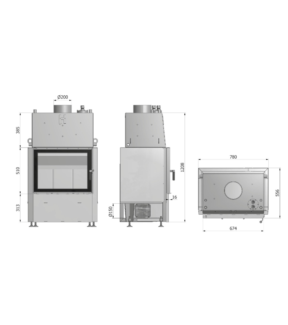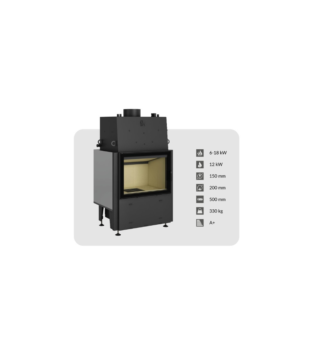 Les amateurs de grands feux ne seront pas déçus : le Volcano WT-12 accepte des bûches de 50 cm, ce qui signifie moins de rechargements et plus de temps pour profiter du spectacle des flammes. Avec une sortie d’échappement de 200 mm et une prise d’air de 150 mm, cet insert assure une combustion optimale et une évacuation des fumées efficace.