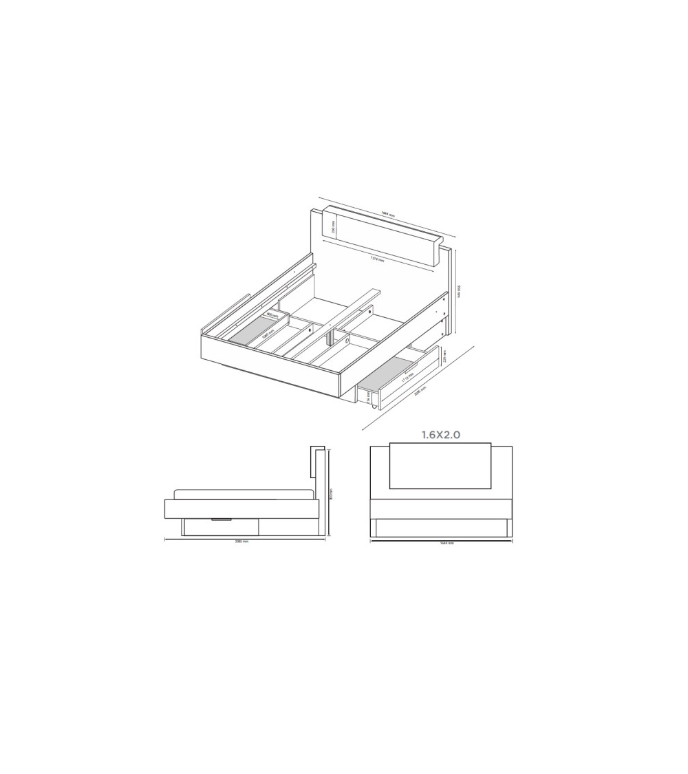 Le Lit BARTON est proposé dans une taille standard de 160 x 200 cm.