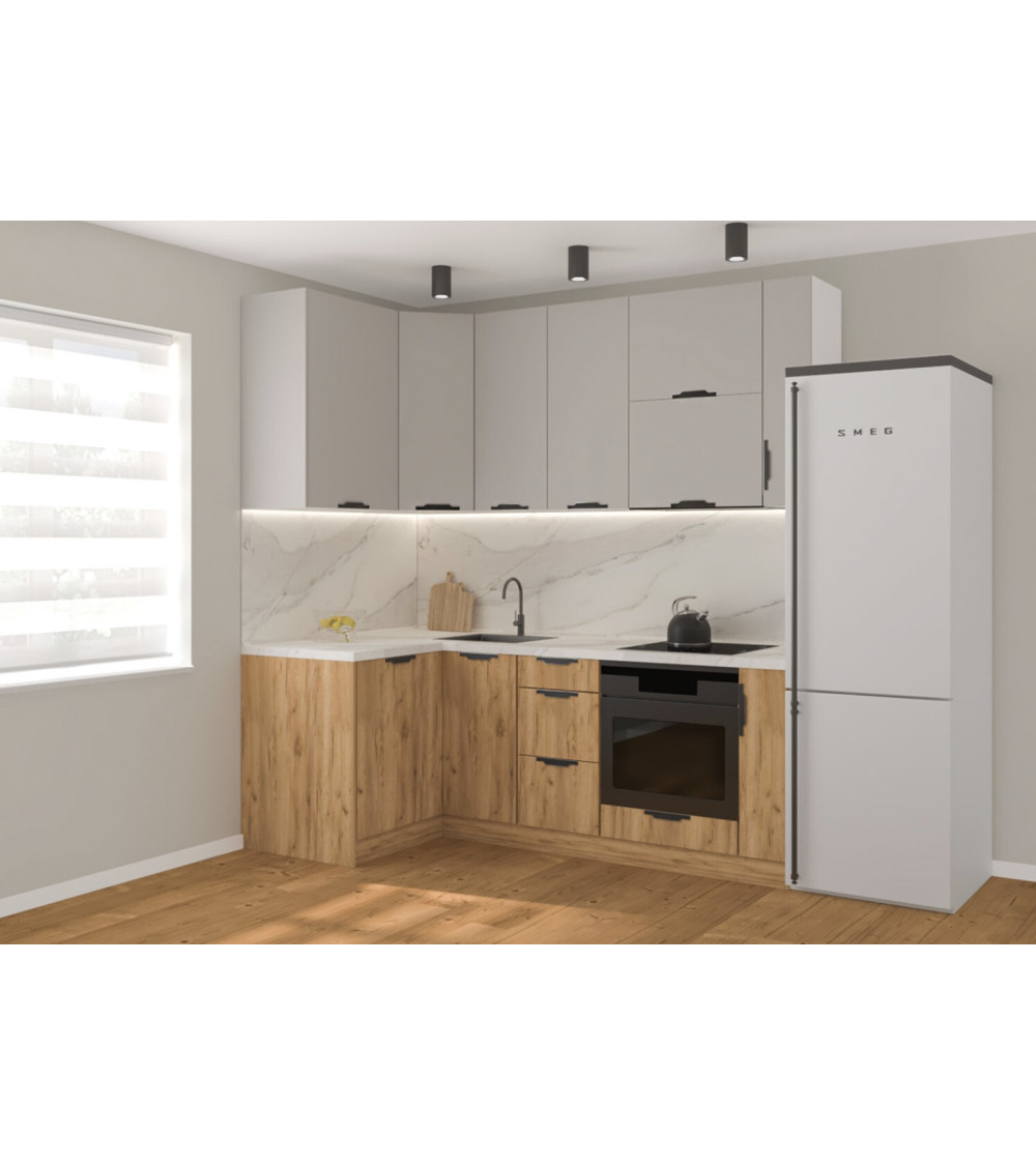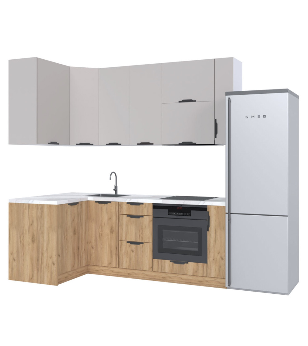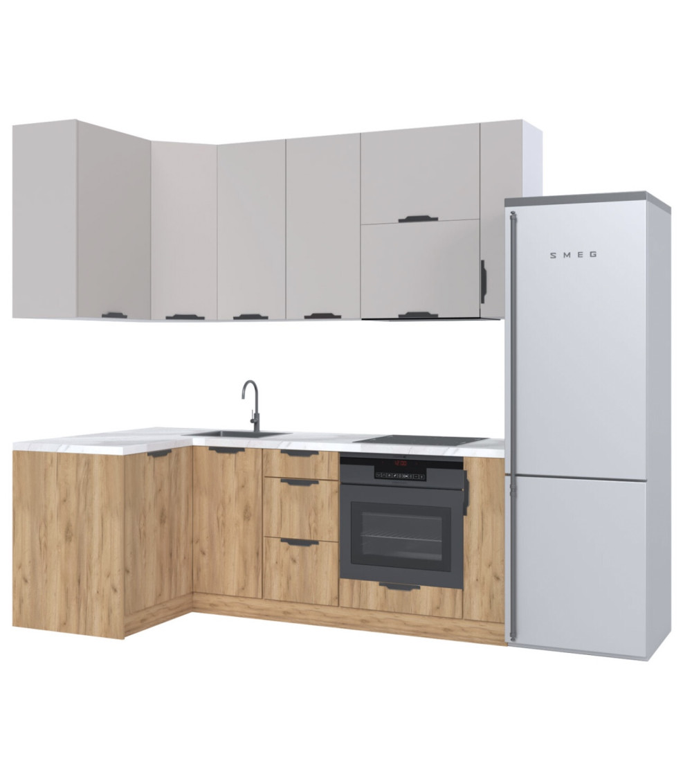 | Nom du modèle | Cuisine Leo en L - 122x220 cm - Blanc et chêne |