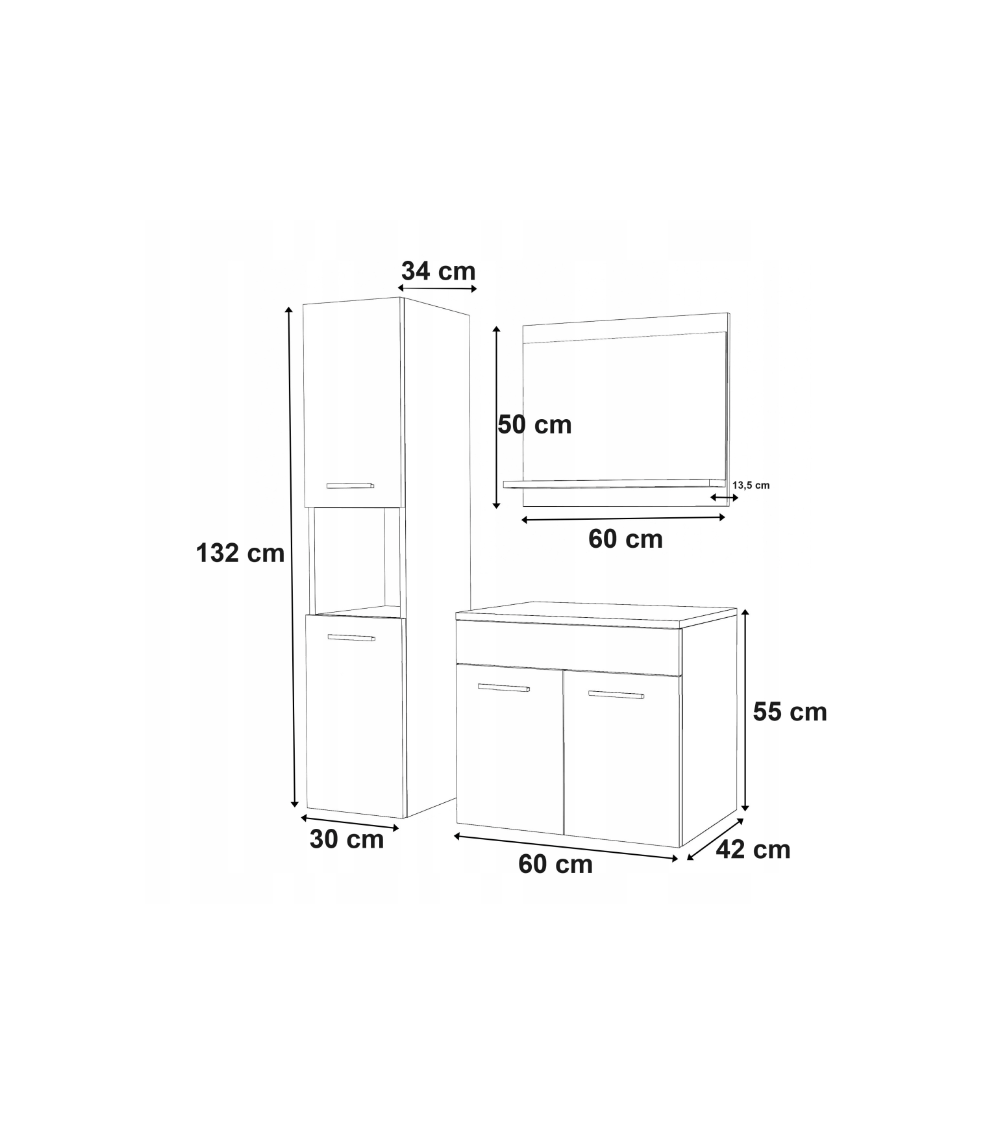 | Dimensions du meuble vasque | 60 cm (largeur) x 55 cm (hauteur) x 42 cm (profondeur) |