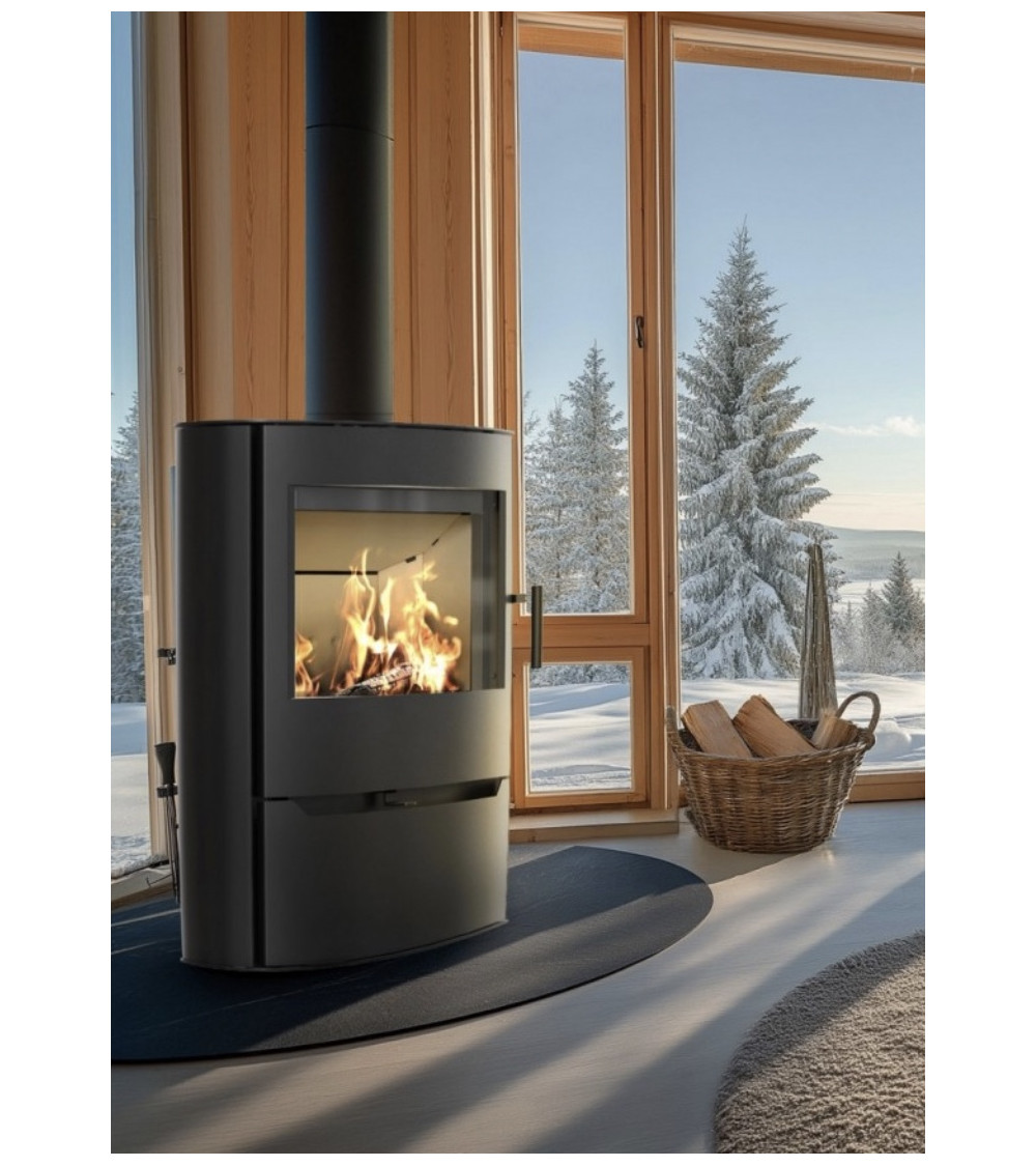 Profitez d'une chaleur puissante et homogène avec le Poêle à bois Jonh ILDNORD RENVIK 10kW : un modèle design et robuste, pensé pour les grandes surfaces et les intérieurs contemporains.