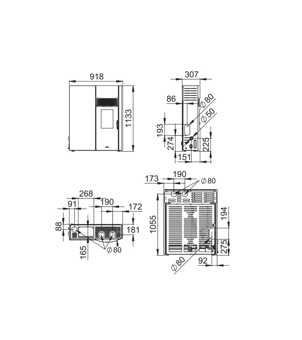 | Sortie des fumées | 80 mm (supérieure / latérale / arrière) |
