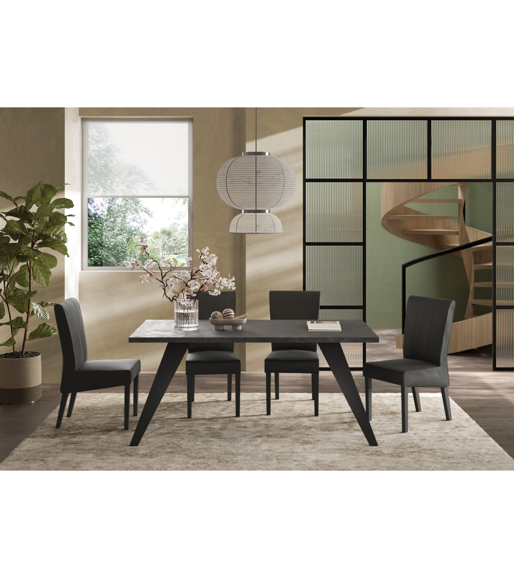 Bienvenue dans votre salle à manger PAUL II, un espace où l'élégance de l'ardoise rencontre la sobriété du plomb pour créer une atmosphère sophistiquée et contemporaine. Notre ensemble de mobilier complet vous offre à la fois style et fonctionnalité pour des repas mémorables et des moments de convivialité.