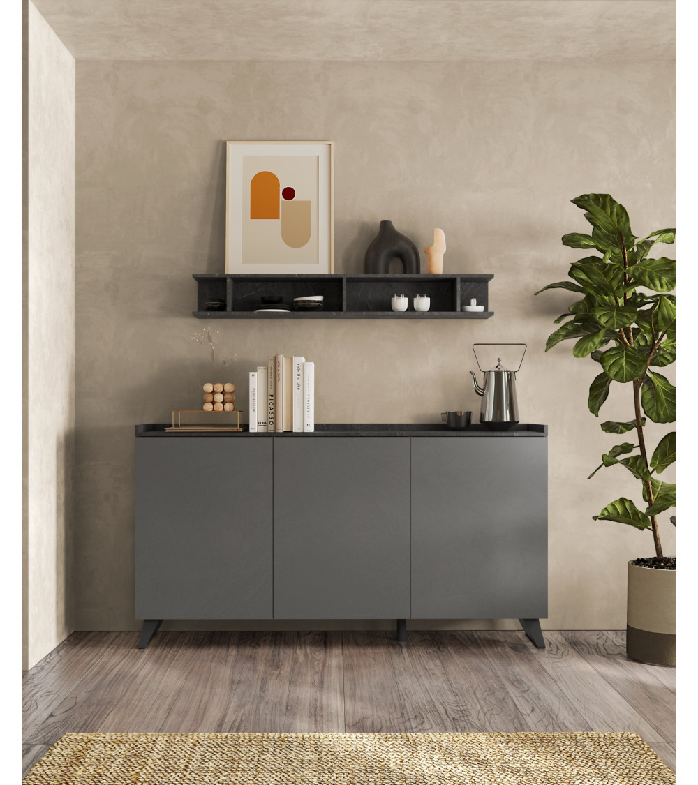 Pour compléter cet ensemble harmonieux, notre étagère couleur plomb offre un espace d'exposition élégants pour vos objets décoratifs préférés. Cette étagère ajoute une dimension visuelle à votre salle à manger tout en vous permettant de mettre en valeur vos pièces préférées.
