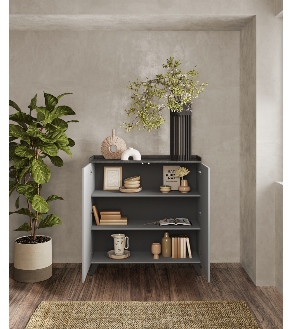 Notre buffet 3 portes et notre buffet haut en ardoise et plomb offrent un espace de rangement généreux pour votre vaisselle, vos ustensiles de table et autres objets essentiels. La combinaison de l'ardoise et du plomb crée un contraste subtil et sophistiqué, ajoutant une touche de sophistication à votre espace de repas.