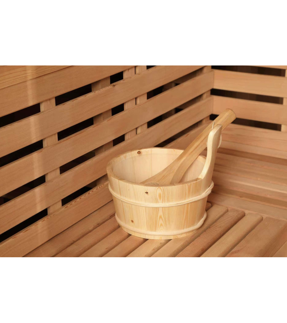 | Capacité | Équipé d’un double banc spacieux, ce sauna est idéal pour accueillir confortablement 4 à 6 personnes. |