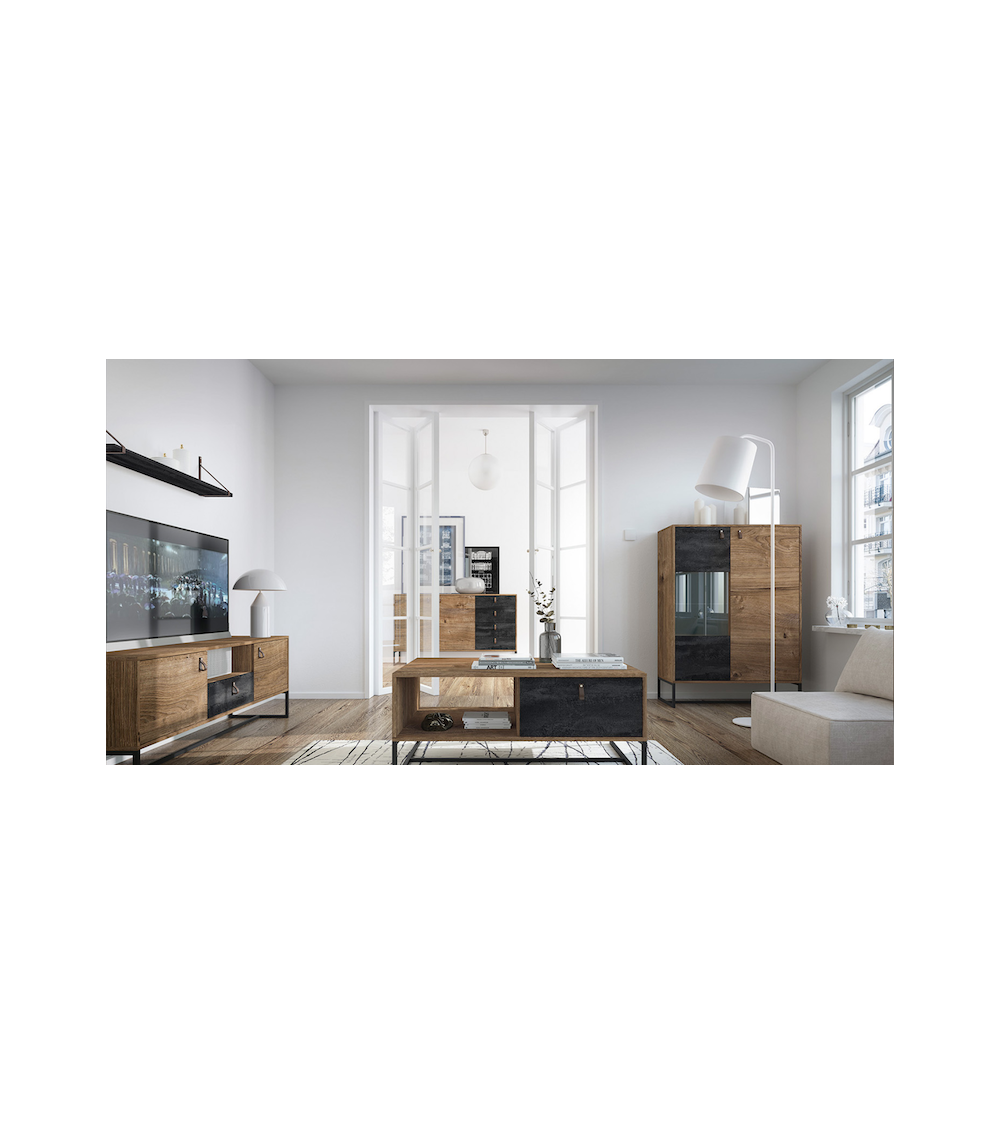 La combinaison contrastée d'une base noire avec deux couleurs de décors ajoutera un style remarquable à votre pièce. La poignée avec un raccord en laiton complète l'ensemble. Grâce à la multitude de formes de la collection, vous ne manquerez jamais d'idées nouvelles pour des arrangements passionnants. Si vous souhaitez une décoration intérieure simple, choisissez DARK.