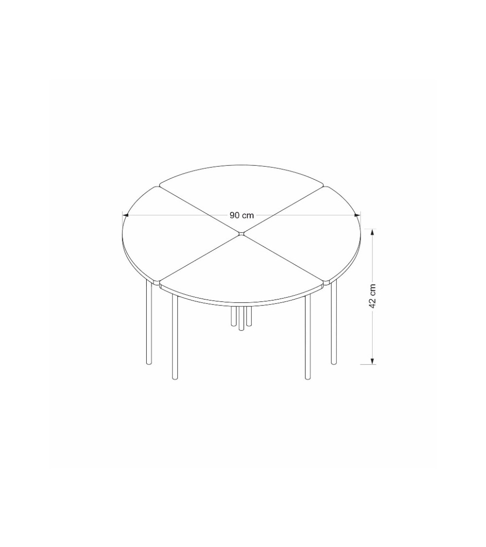 Une fois les quatre morceaux assemblés, la table basse se transforme en une table ronde élégante et fonctionnelle de 90 cm de diamètre. Cette taille généreuse offre un espace de surface idéal pour accueillir des boissons, des livres, des décorations ou d'autres objets, tout en créant un point focal élégant dans votre espace de vie.