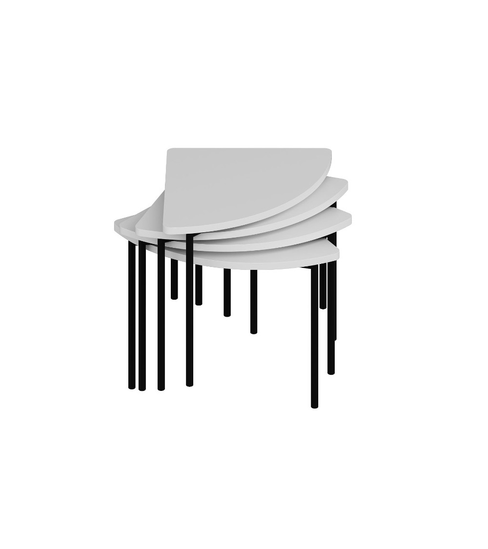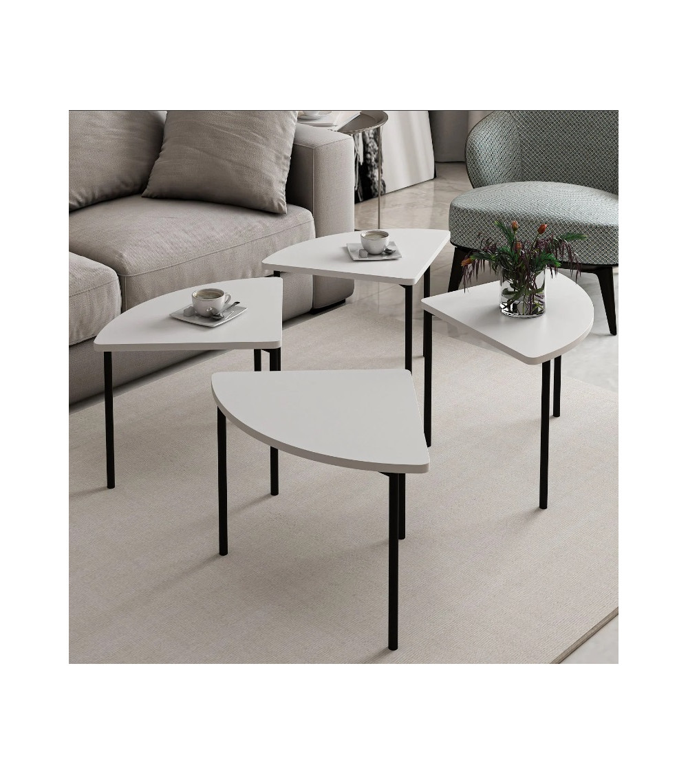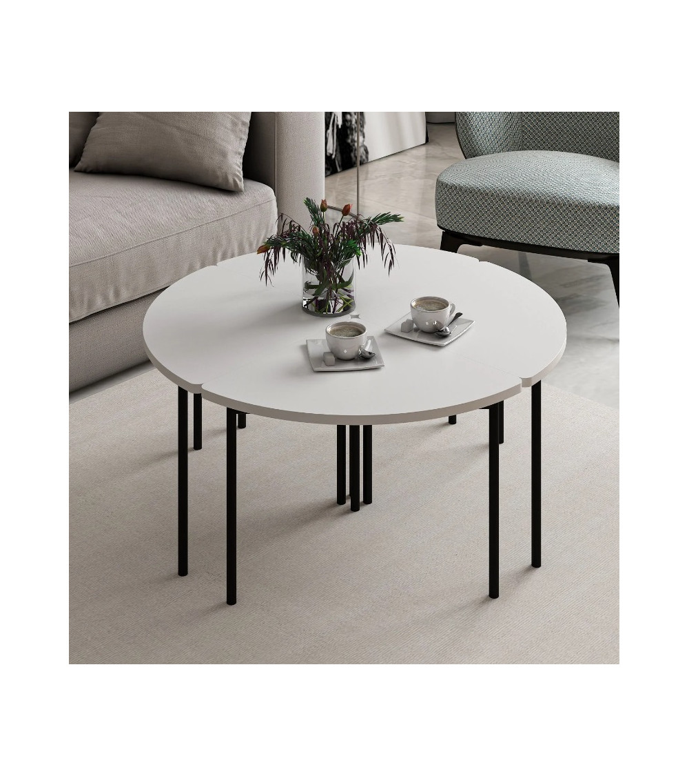 Découvrez notre table basse EMMA innovante et polyvalente, conçue pour s'adapter à vos besoins et à votre espace. Cette table se compose de quatre morceaux distincts qui, une fois assemblés, se transforment en une élégante table ronde de 90 cm de diamètre.