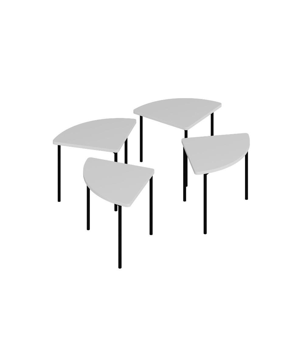 Empilés les uns sur les autres, les 4 morceaux forment une plus petite table très design avec différents niveaux.