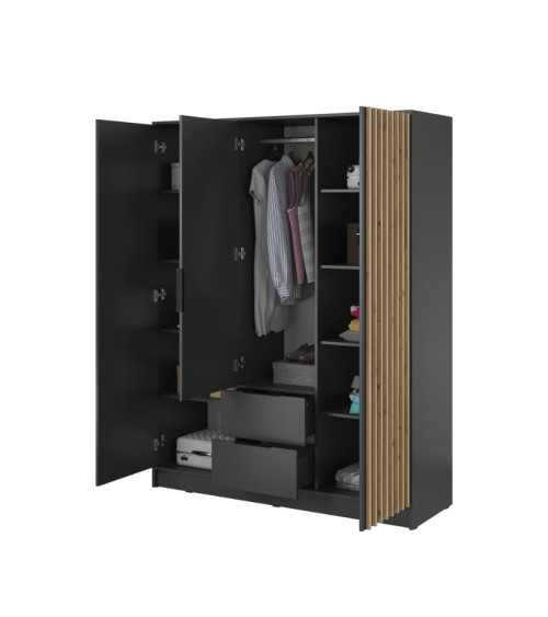 Immergetevi nell'eleganza contemporanea con il nostro armadio a 3 ante MELODIE, rifinito in un sofisticato antracite con un raffinato dettaglio a specchio.