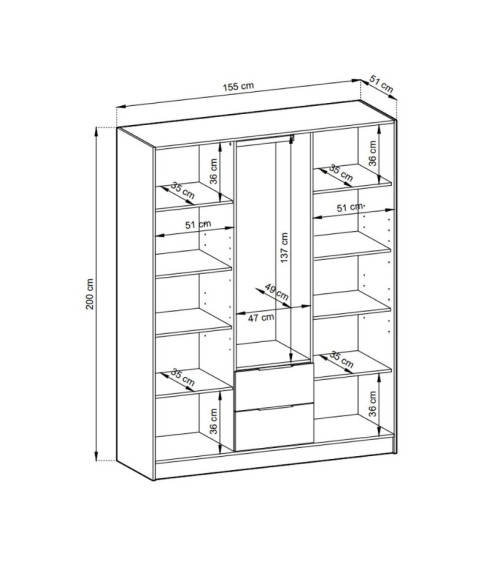 Nella parte inferiore dell'armadio, due cassetti offrono un pratico spazio per riporre i capi piegati, gli accessori e tutto ciò che si preferisce tenere in ordine.