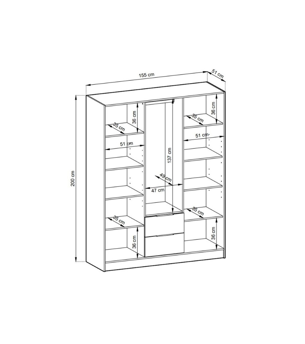 Nella parte inferiore dell'armadio, due cassetti offrono un pratico spazio per riporre i capi piegati, gli accessori e tutto ciò che si preferisce tenere in ordine.