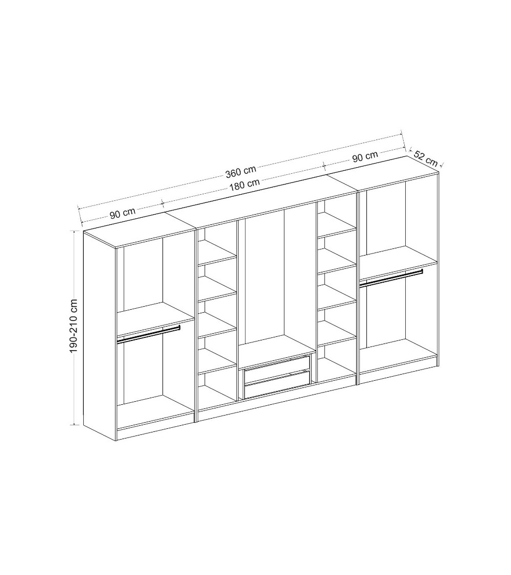 È dotato di cinque scomparti, suddivisi in un armadio grande e quattro piccoli. Questi spazi sono ideali per appendere abiti di diverse lunghezze, dai vestiti eleganti alle camicie casual, garantendo un facile accesso e una conservazione organizzata.