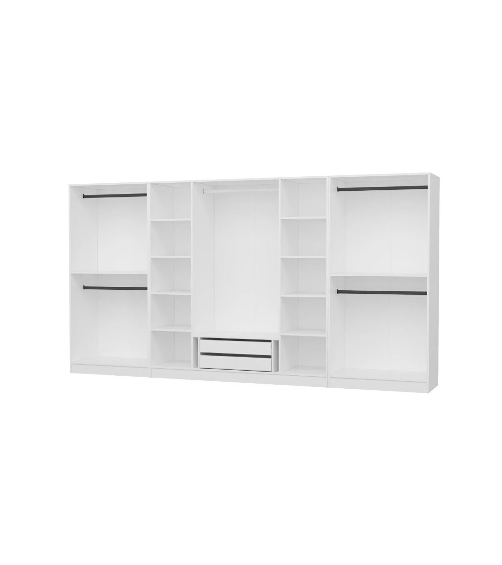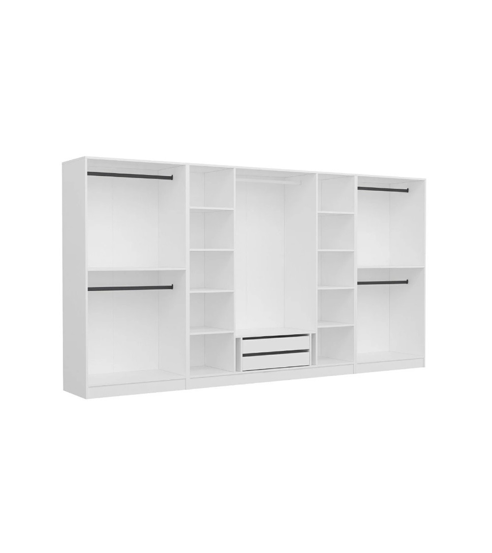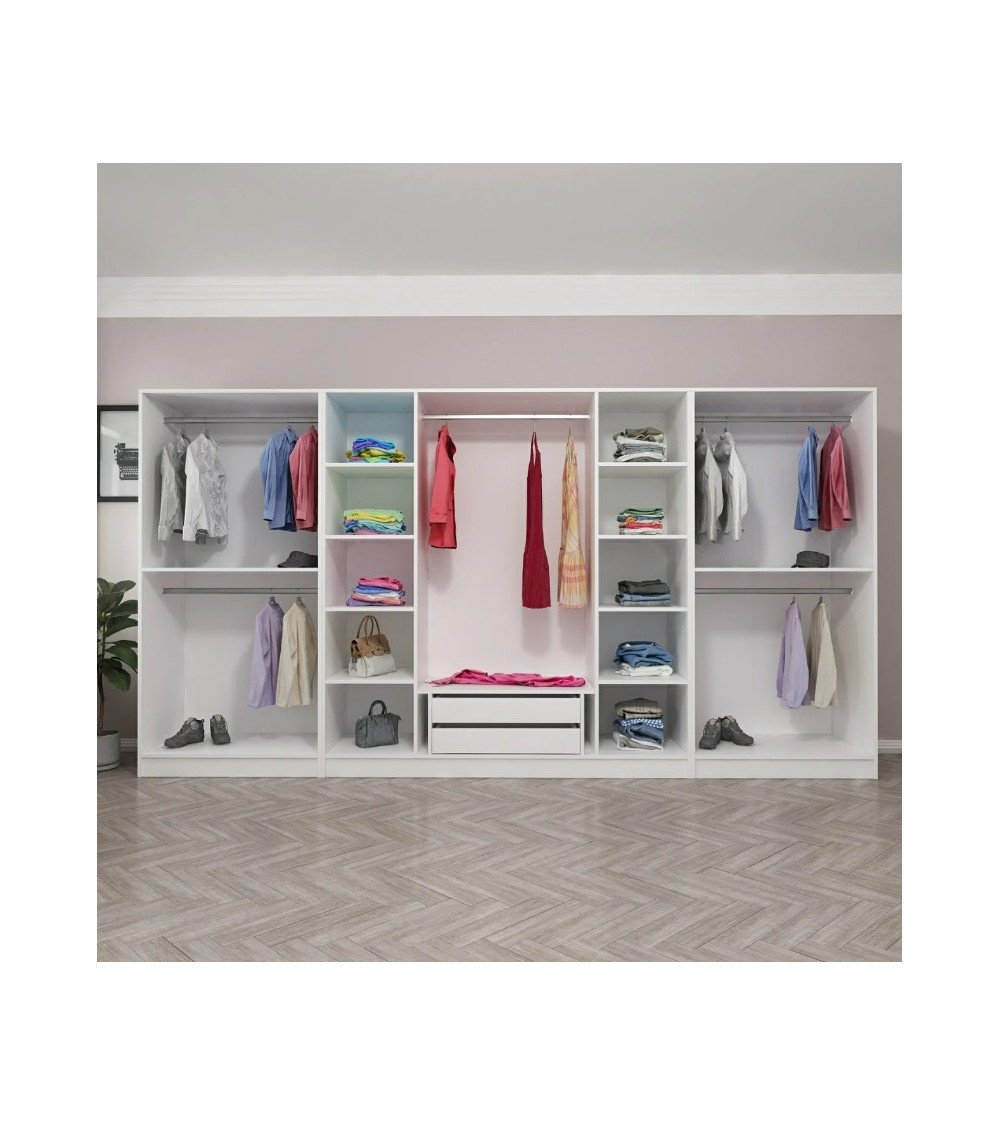 Questo armadio bianco NEO è l'emblema dell'organizzazione e dell'eleganza e offre uno spazio ampio e multifunzionale per organizzare e mettere in mostra il guardaroba con stile.