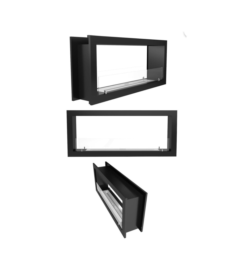 La struttura bifacciale e nera conferisce a questo caminetto un aspetto chic e moderno, aggiungendo un tocco di raffinatezza al tuo spazio abitativo.