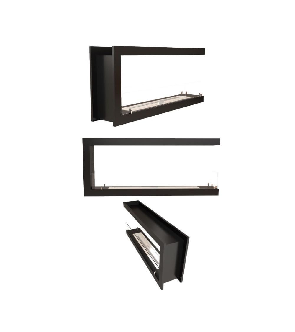 Scopri il camino bifacciale a bioetanolo U da 200 cm con cornice nera, una soluzione elegante e moderna per portare calore e stile ai tuoi interni. Questo camino è progettato per offrire una vista mozzafiato delle fiamme da due lati, ideale per spazi aperti o come separazione visiva tra due stanze.