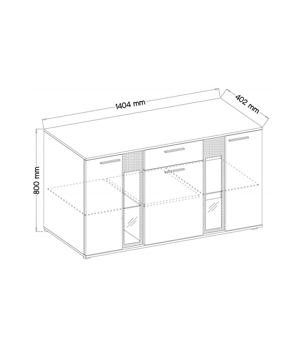 Con 3 ante massicce, un cassetto e 2 frontali in vetro per esporre i vostri oggetti decorativi, questa credenza sarà un'aggiunta funzionale al vostro spazio abitativo, ma anche un elemento decorativo che stupirà i vostri ospiti. La combinazione di design moderno e funzionalità intelligente la rende la scelta ideale per gli amanti dello stile e della praticità.
