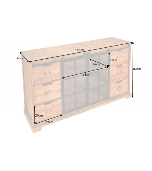 Questa credenza LANDES II in pino e MDF combina un design rustico con una funzionalità moderna, ideale per migliorare l'estetica del vostro salotto. Con le sue generose dimensioni di 148 cm di lunghezza, 83 cm di altezza e 40 cm di profondità, questo mobile offre un ampio e organizzato spazio per riporre stoviglie e accessori decorativi.