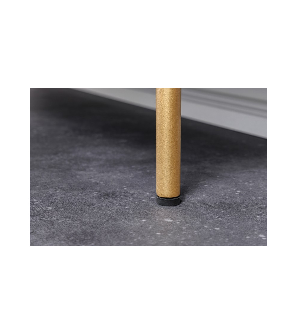 Il corpo della credenza è nero e contrasta elegantemente con le gambe dorate. La scocca è realizzata in legno di mango laccato, rinomato per la sua durata e bellezza naturale, mentre le gambe sono in metallo verniciato a polvere, per garantire stabilità e robustezza ottimali.