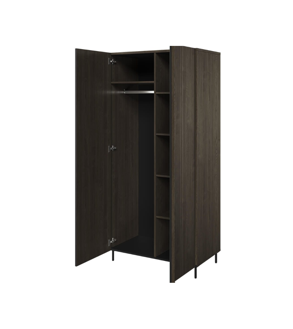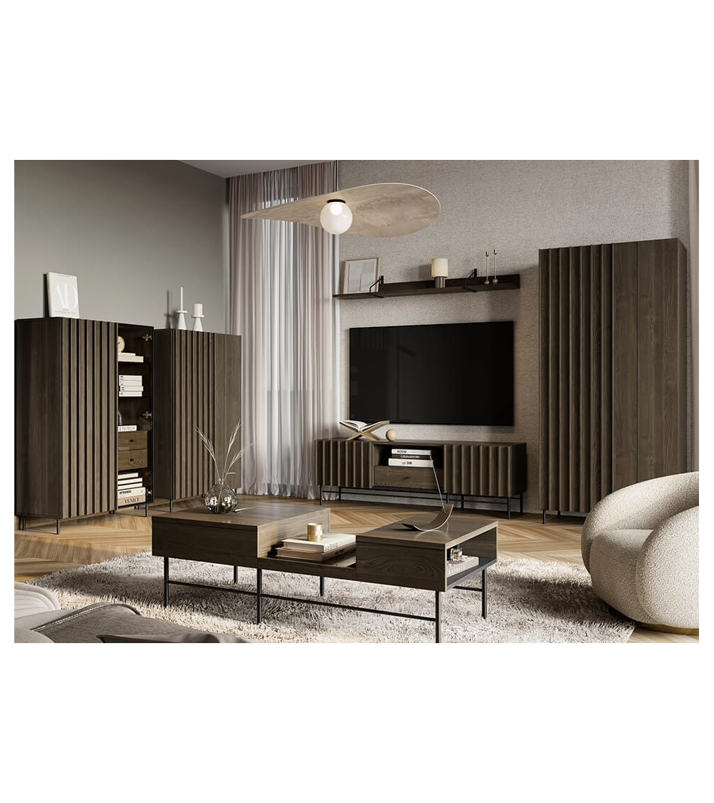 Questo armadio aggiunge un tocco sofisticato grazie al contrasto tra il frassino Portland e il nero. Non solo pratico, ma anche un complemento d'arredo unico. Esplora la collezione per il soggiorno per completare il tuo arredamento.