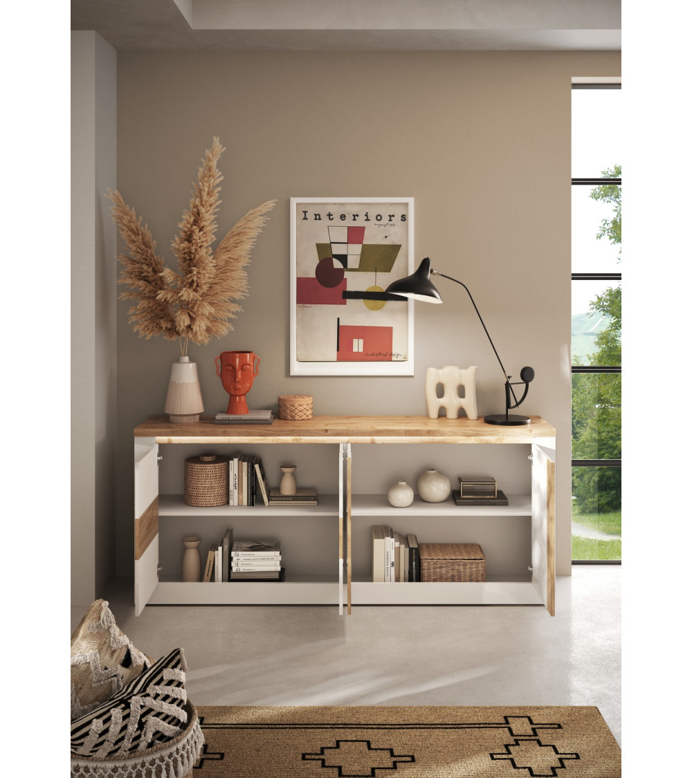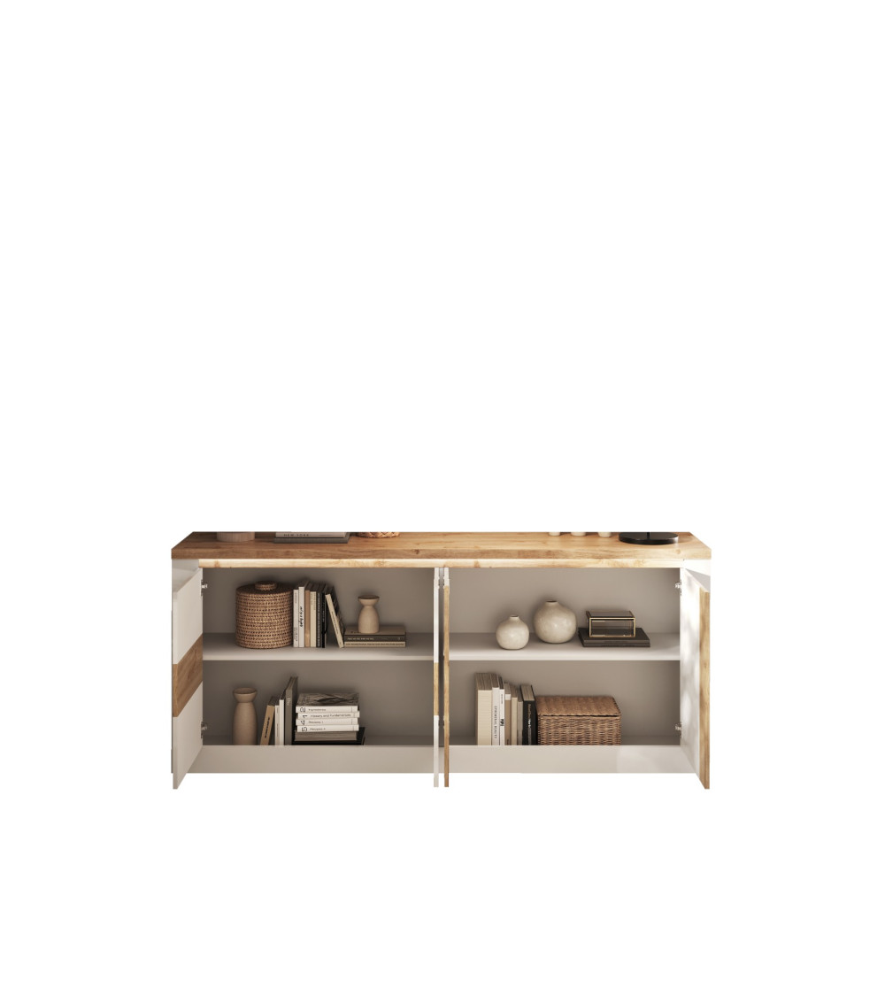 Con il Buffet ISCHIA 210 cm, puoi coniugare estetica e praticità. Le sue 4 ante spaziose offrono ampio spazio per riporre stoviglie, accessori e oggetti di uso quotidiano.