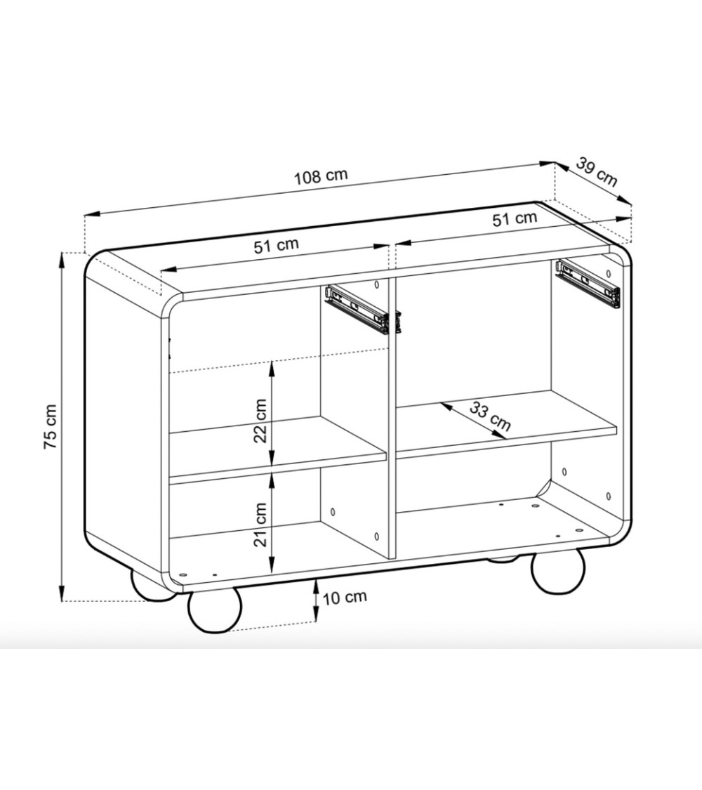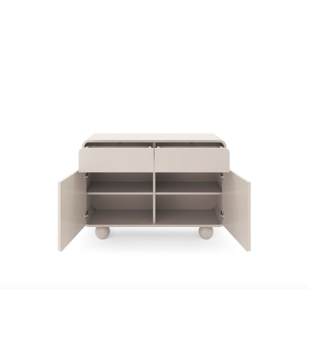 Lo spazio interno ottimizzato consente di organizzare stoviglie, libri o oggetti quotidiani mantenendo la casa ordinata. I piedi sferici originali aggiungono un dettaglio decorativo unico, ispirato allo stile scandinavo rivisitato.