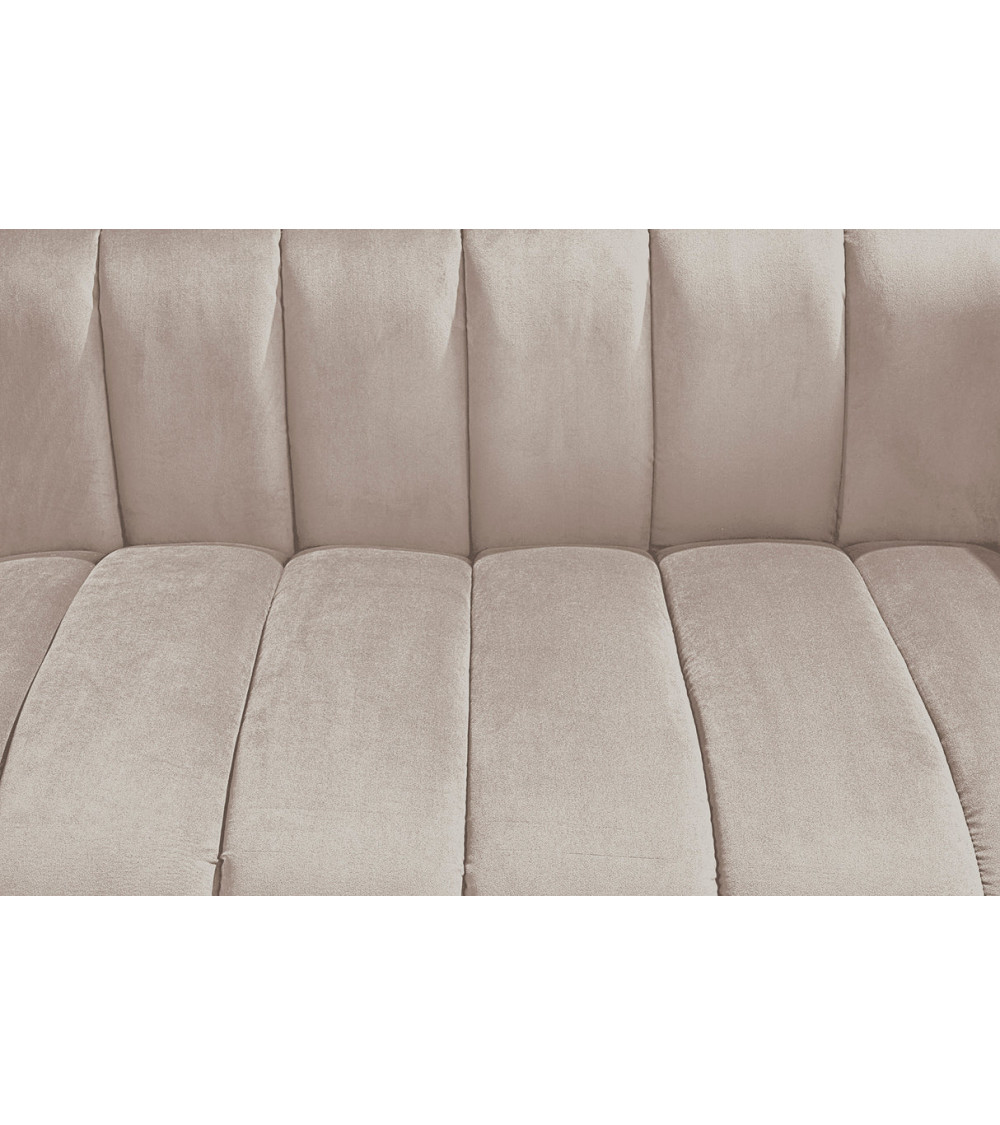 Il divano NOBLESSE 165 cm combina eleganza e comfort. Con il suo rivestimento in velluto testurizzato champagne e le linee pulite, si integra armoniosamente in ogni tipo di arredamento. Questo divano a 2 posti è progettato per offrire una seduta confortevole e uno stile sofisticato.