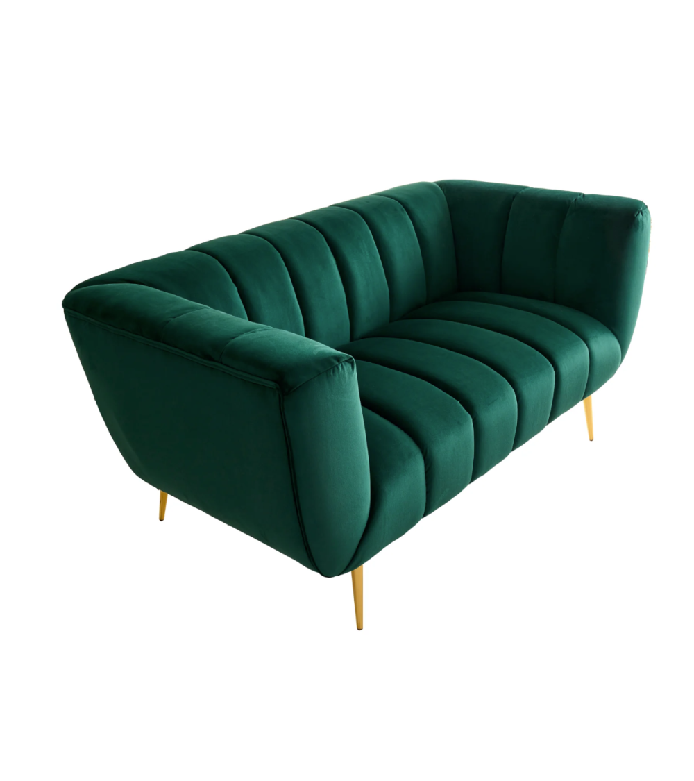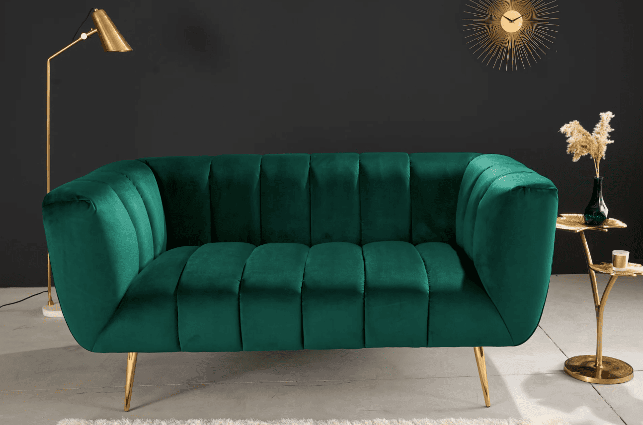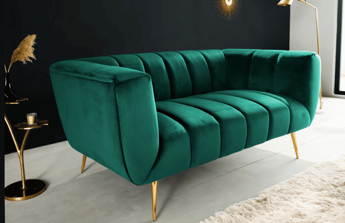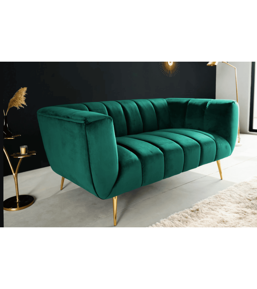 Aggiungi un tocco di lusso al tuo salotto con il divano NOBLESSE 165 cm in velluto verde smeraldo. Eleganza, comfort e design compatto si fondono per valorizzare il tuo spazio.