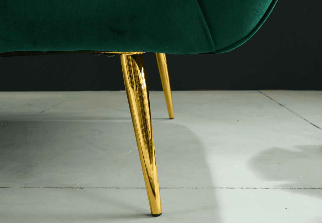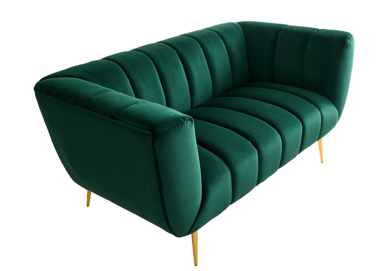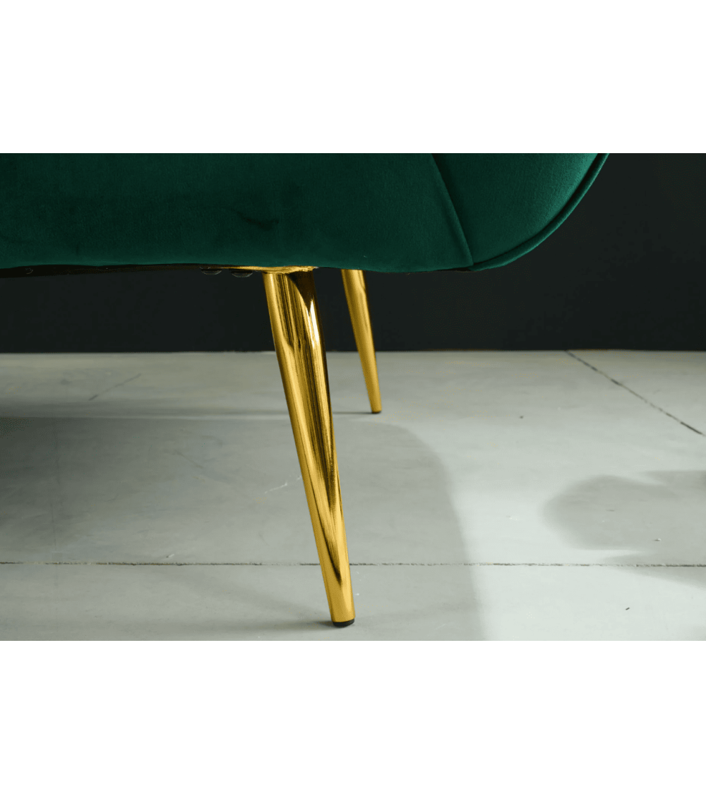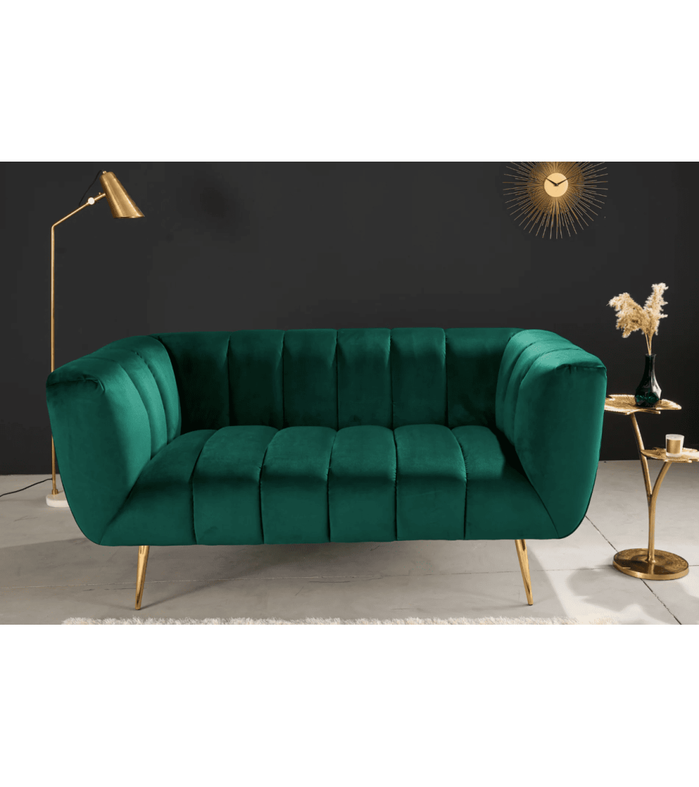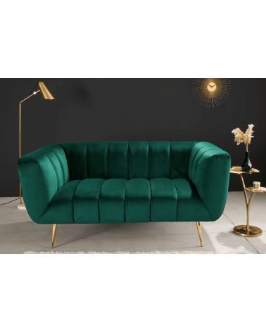 Grazie alle sue gambe in metallo dorato, questo divano garantisce una robustezza duratura, aggiungendo una finitura sofisticata. Con le sue dimensioni compatte, si adatta perfettamente a spazi più piccoli mantenendo una seduta confortevole per due persone.